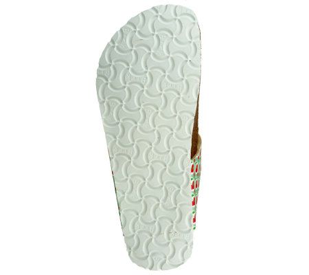 Sweet feet. A pretty tulip pattern adorns the strap of these cozy thong sandals. They're the next best thing to tiptoeing through the tulips. From Papillio.