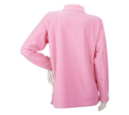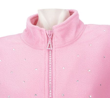 Staying warm rarely looks this good. The fleece pullover undergoes a stylish, studded makeover to bring you this plush design. Rhinestone details on the zipper and front provide some unexpected edge and whimsy. From Quacker Factory(R).