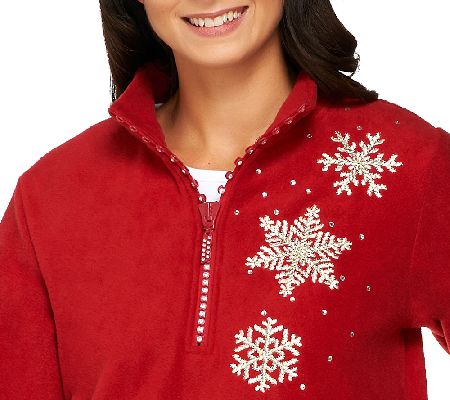 Quacker Factory Rhinestone 1/2 Zip Embellished Fleece Pullover