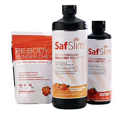 Includes one super-sized 32-fl-oz SafSlim, one 16-fl-oz SafSlim, and 30 SafSlim Hunger Chews in Mandarin Orange