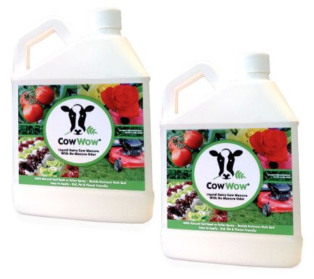 Let nature supercharge your lawn and garden with Cow Wow--concentrated, liquid dairy cow manure you apply with a hose or a handheld sprayer. Ideal for flowers, veggies, lawns, trees, and indoor plants, it replenishes organic matter and provides essential nutrients your grass and plants need. Best of all, it has no manure odor!
