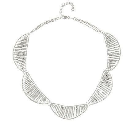 Fan favorite. Fan-shaped stations make this statement necklace the most valuable player of your jewelry box. Score one for so-pretty style that makes your polished ensemble anything but uniform.