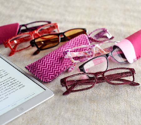 • Includes seven pairs of readers: six pairs of traditional readers and one pair of computer readers; seven coordinating soft fabric cases; and one cleaning cloth