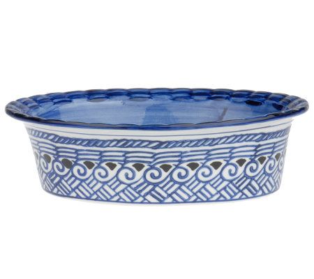 Make the most of your favorite recipes when you prepare, cook, and serve them using this 12-piece set. Each oval ceramic dish is beautiful with a braided pattern on the outside and a solid blue interior. Wire holders with removable rattan trivets make it easy to move the dishes from the oven to your table. And plastic storage lids allow you to pop any leftovers right into the fridge or freezer. Dishes are dishwasher, microwave, oven, and freezer safe. From Temp-tations(R) Ovenware.