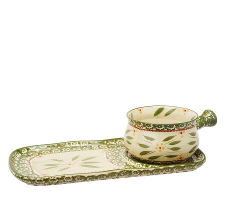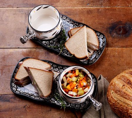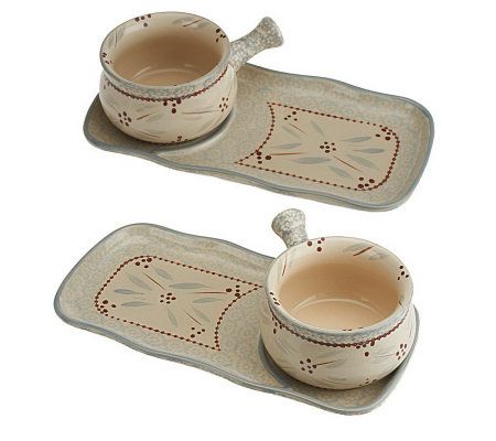 Soup and a sandwich. This four-piece set boasts beautiful plates and bowls for serving a savory lunch or simple dinner. From Temp-tations(R) Ovenware.