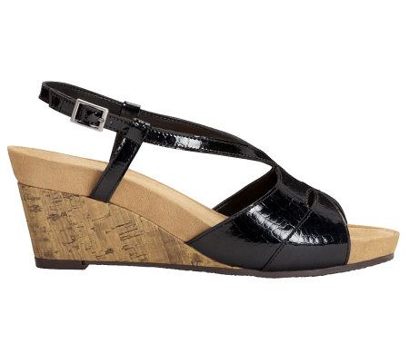 Drive a wedge into foot fatigue! This smart sandal keeps you fashionable with its cork-covered wedge, while a rubber sole features flexible, move-with-you comfort. From A2 by Aerosoles.