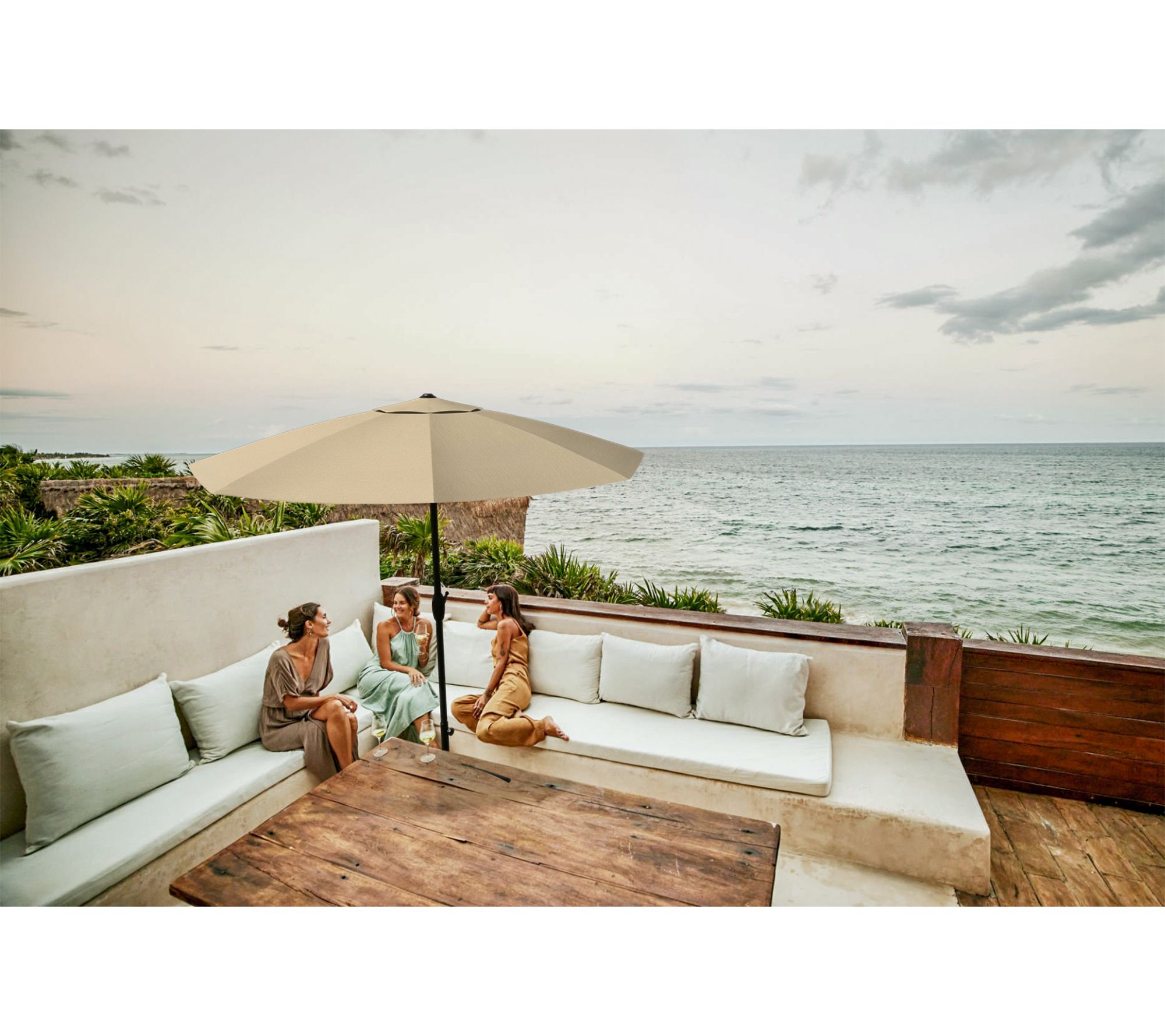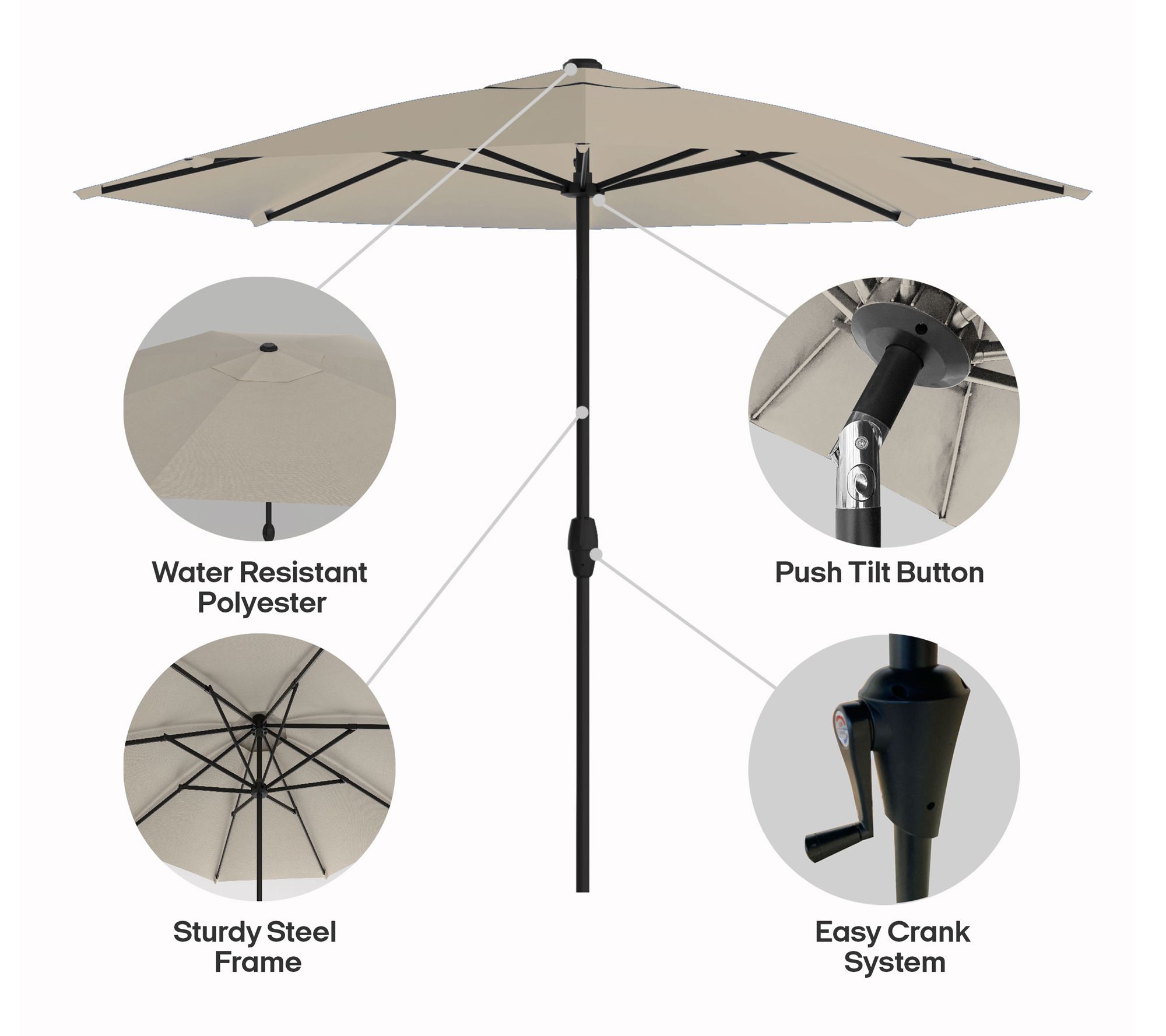 Sunny afternoons are made for relaxing in the shade beneath this market umbrella, offering a spacious 9' canopy that creates a cool retreat for outdoor dining, reading, or hosting friends. A simple crank lift and tilt feature make it easy to adjust your comfort, while the powder-coated steel frame and breezy polyester fabric invite you to linger outdoors, no matter the occasion. From Above.