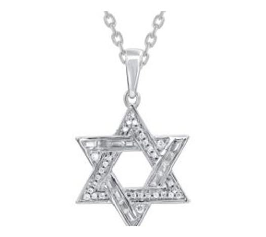 Add a touch of meaningful elegance to your jewelry collection with the Accents by Affinity Diamond star of David pendant in 14K white gold. The star-shaped pendant, adorned with round and baguette diamonds, shines brightly while carrying a significant symbol. From Accents by Affinity Diamonds.