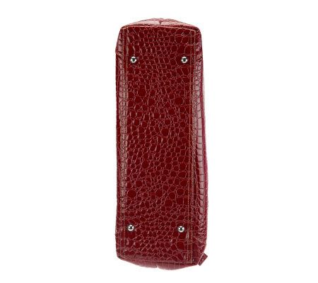 Includes shiny faux croco tote, padded laptop case, smartphone case, padded tablet case, and umbrella