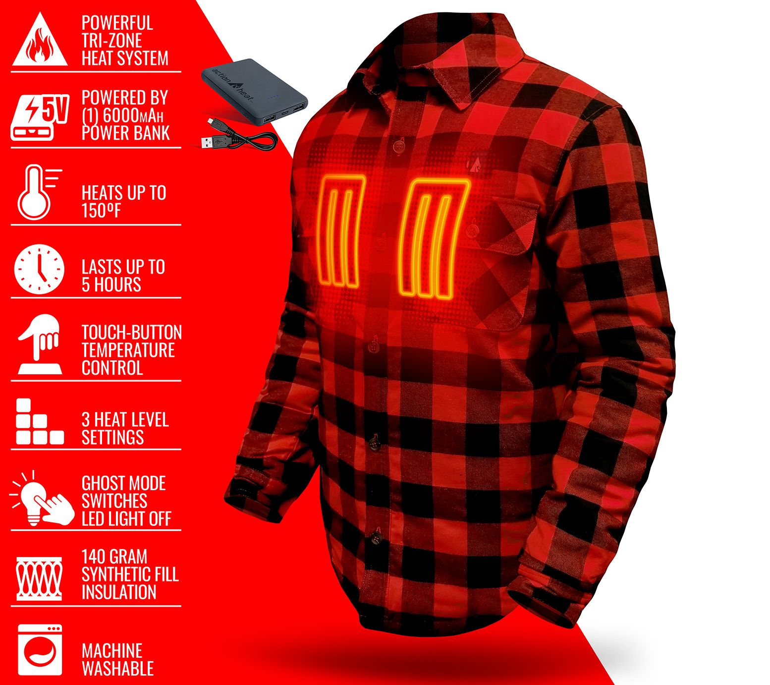 Whether you're zooming down the snowy slopes or heading to the jobsite, look cool and stay warm in this heated flannel shirt. From ActionHeat.