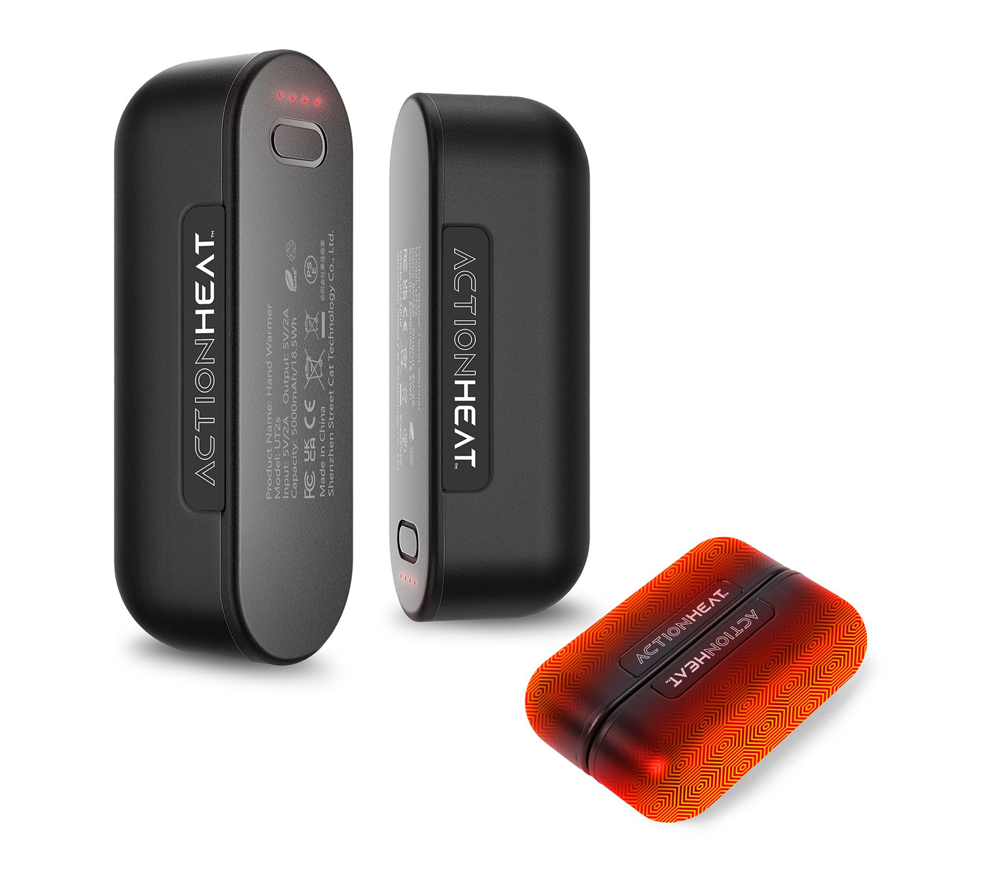 • Includes one ActionHeat 5V Magnetic Dual Electric Hand Warmer, two USB charging cables, one wrist lanyard