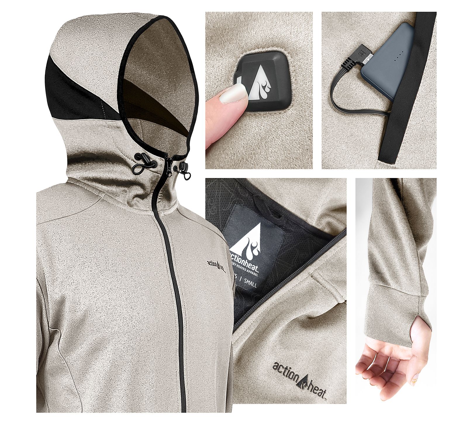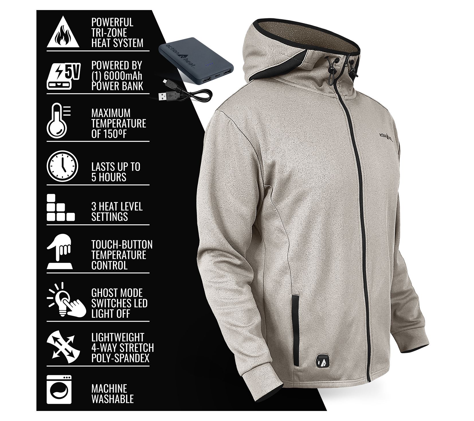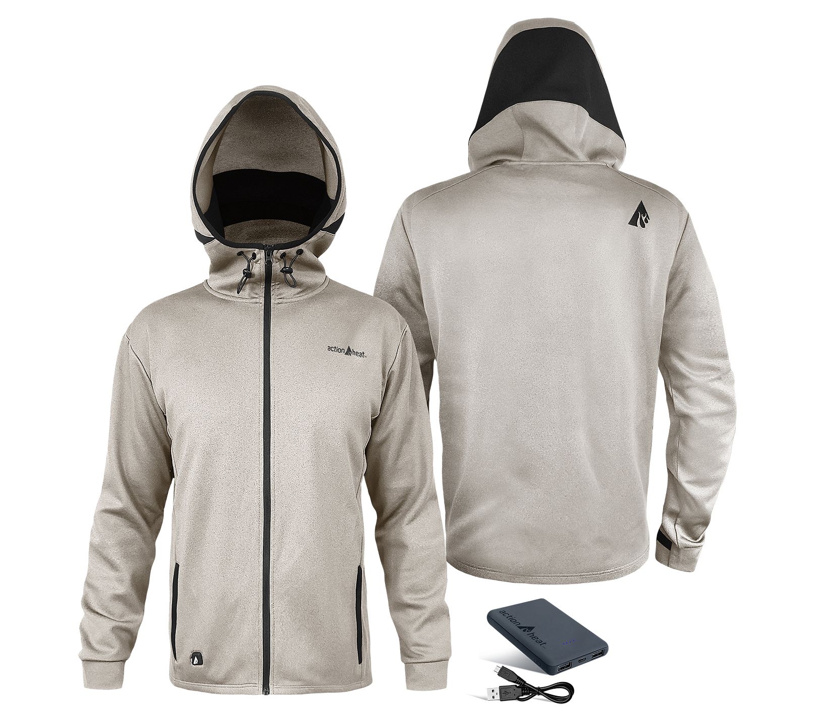 Includes heated hoodie, 5V power bank, and USB charging kit