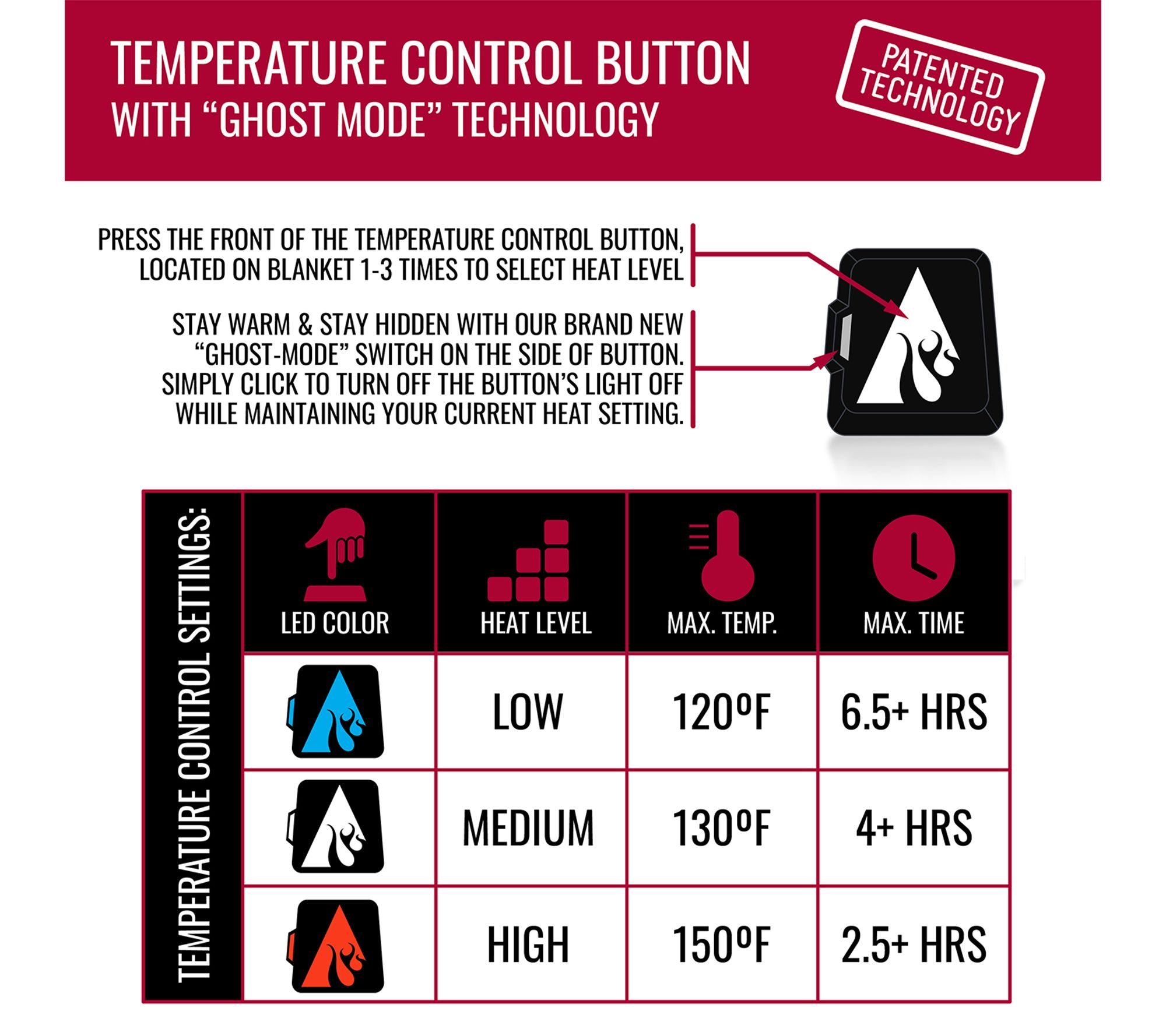 FAR infrared heating and ActionWave heat reflective technology deliver hours of heat