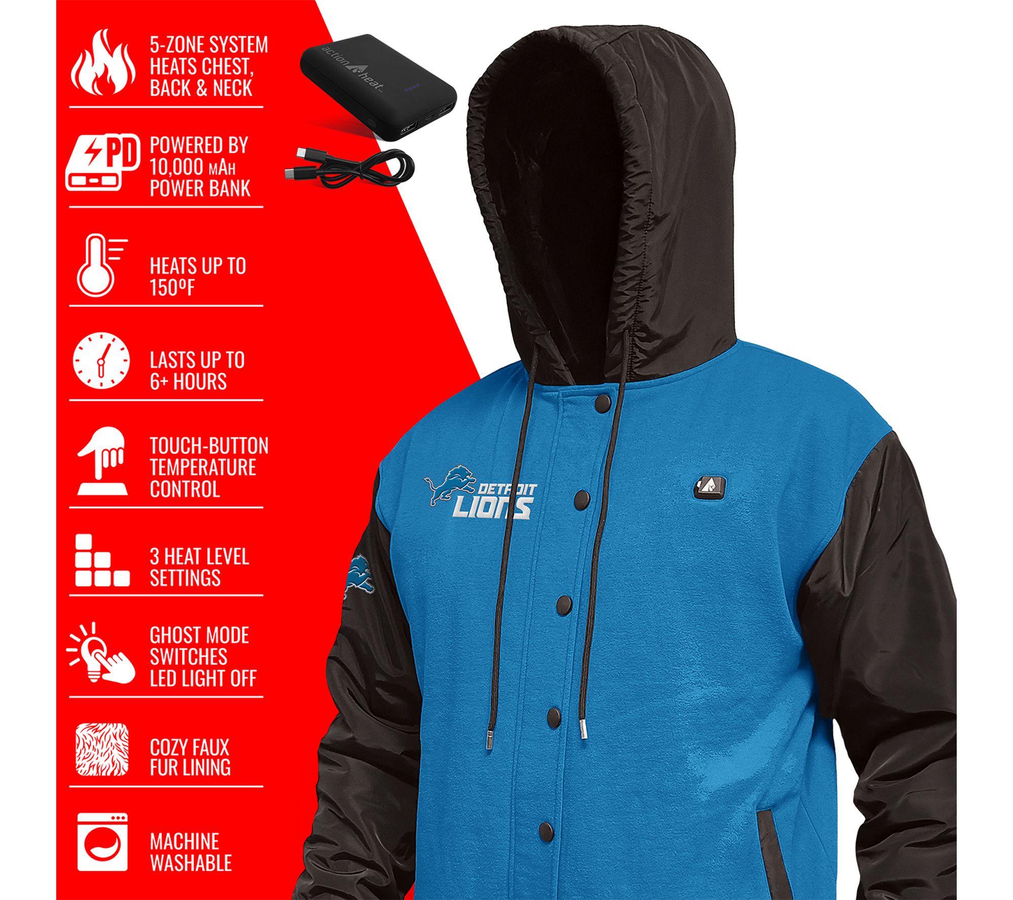 Cheer on your favorite team at chilly games or brisk tailgates with this varsity jacket, featuring built-in heating for customizable warmth wherever the season takes you. Show your NFL pride while staying comfortable during outdoor adventures, family walks, or cold commutes. From ActionHeat.