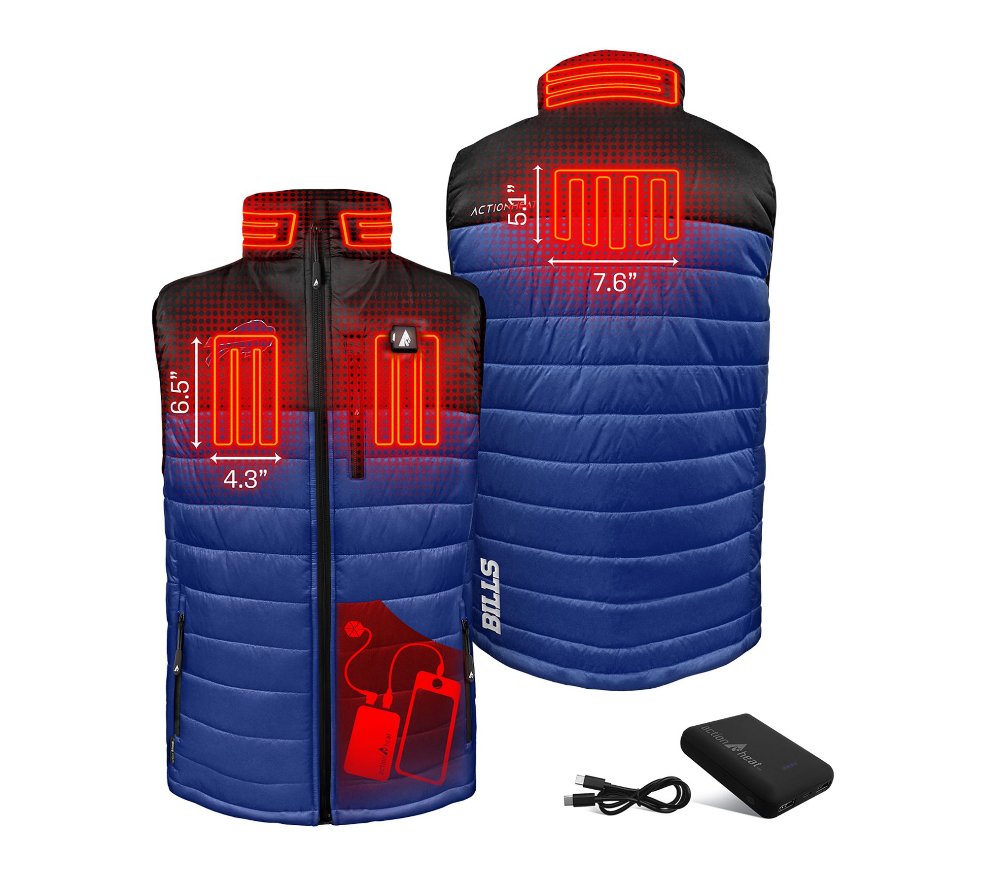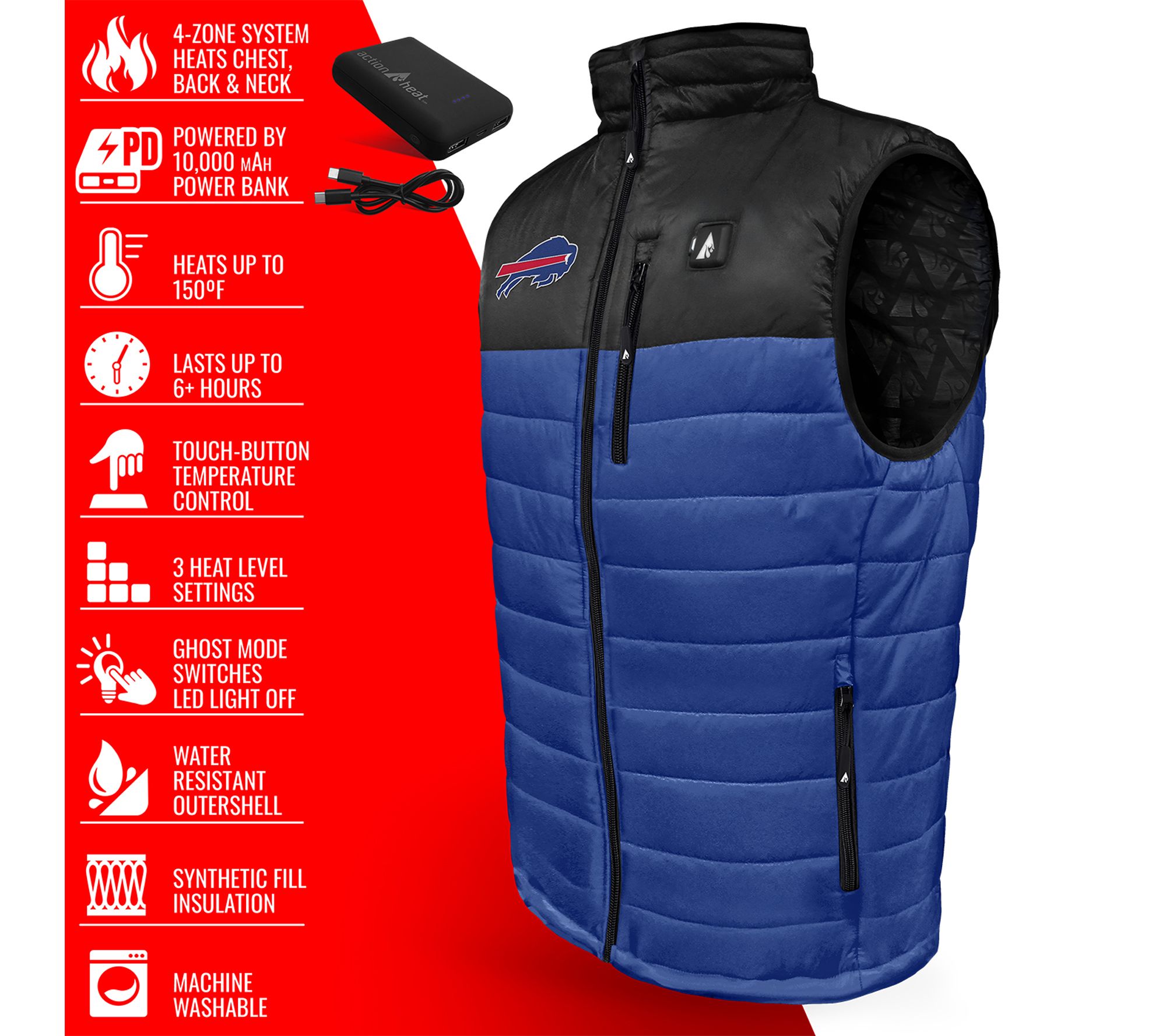 Stay warm and show off your team spirit, whether you're braving chilly stadium seats or tailgating with friends, in this men's puffer vest. Innovative battery-powered heating panels and water-resistant fabric keep you comfortable and cozy, so you can focus on cheering rather than shivering. From ActionHeat.