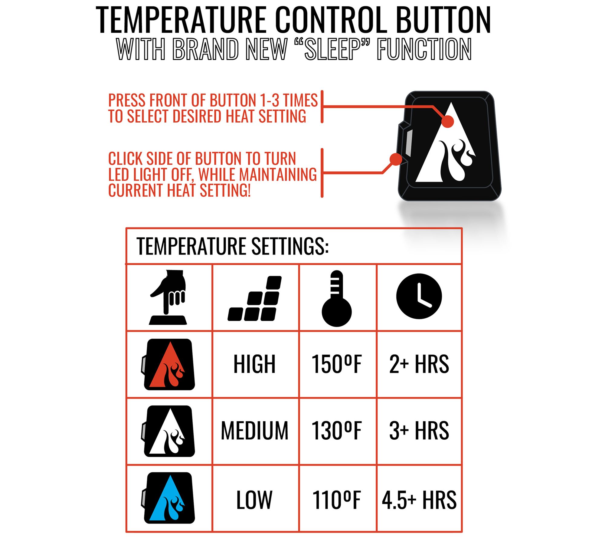 Touch-button control: high, medium, low settings