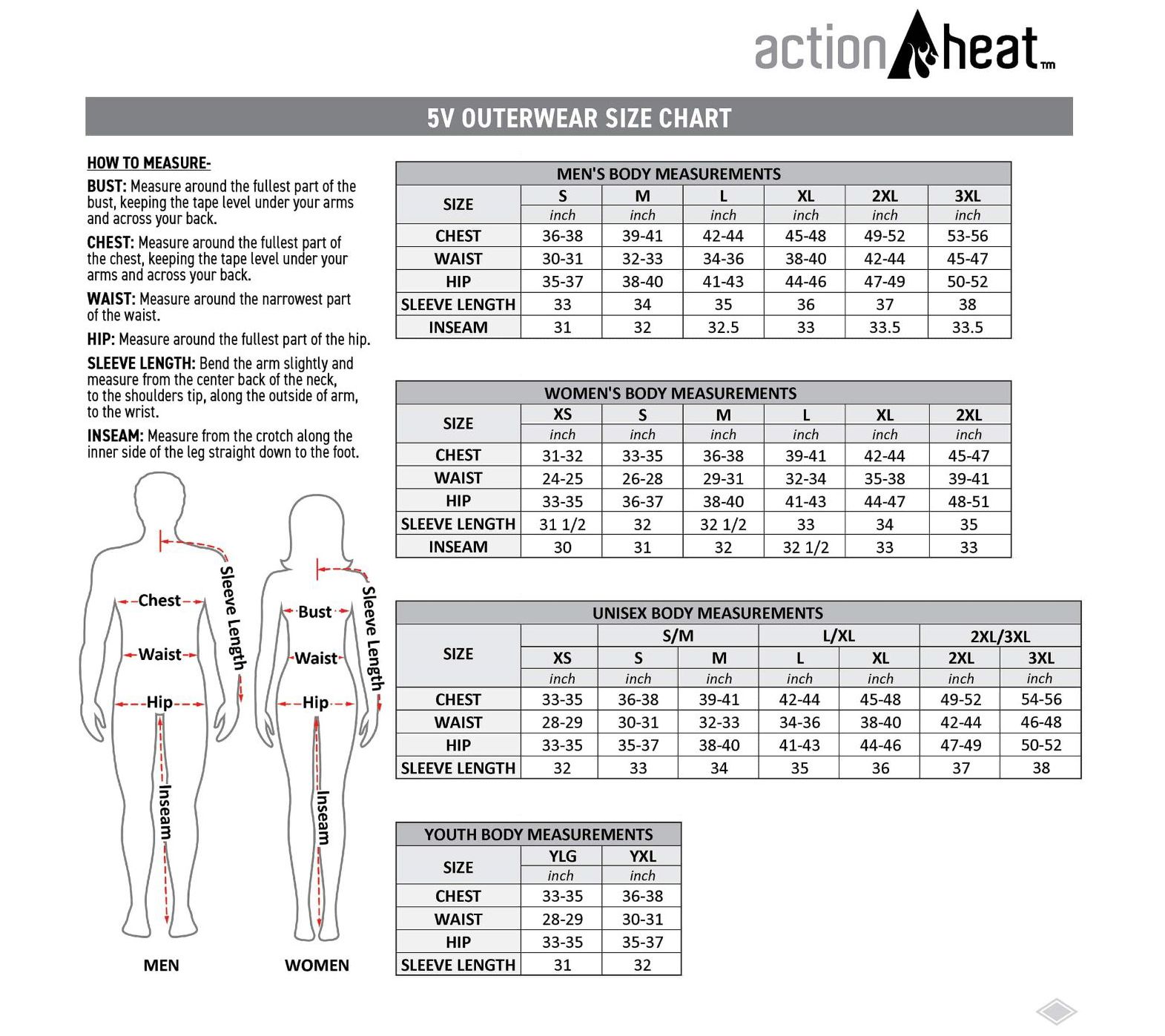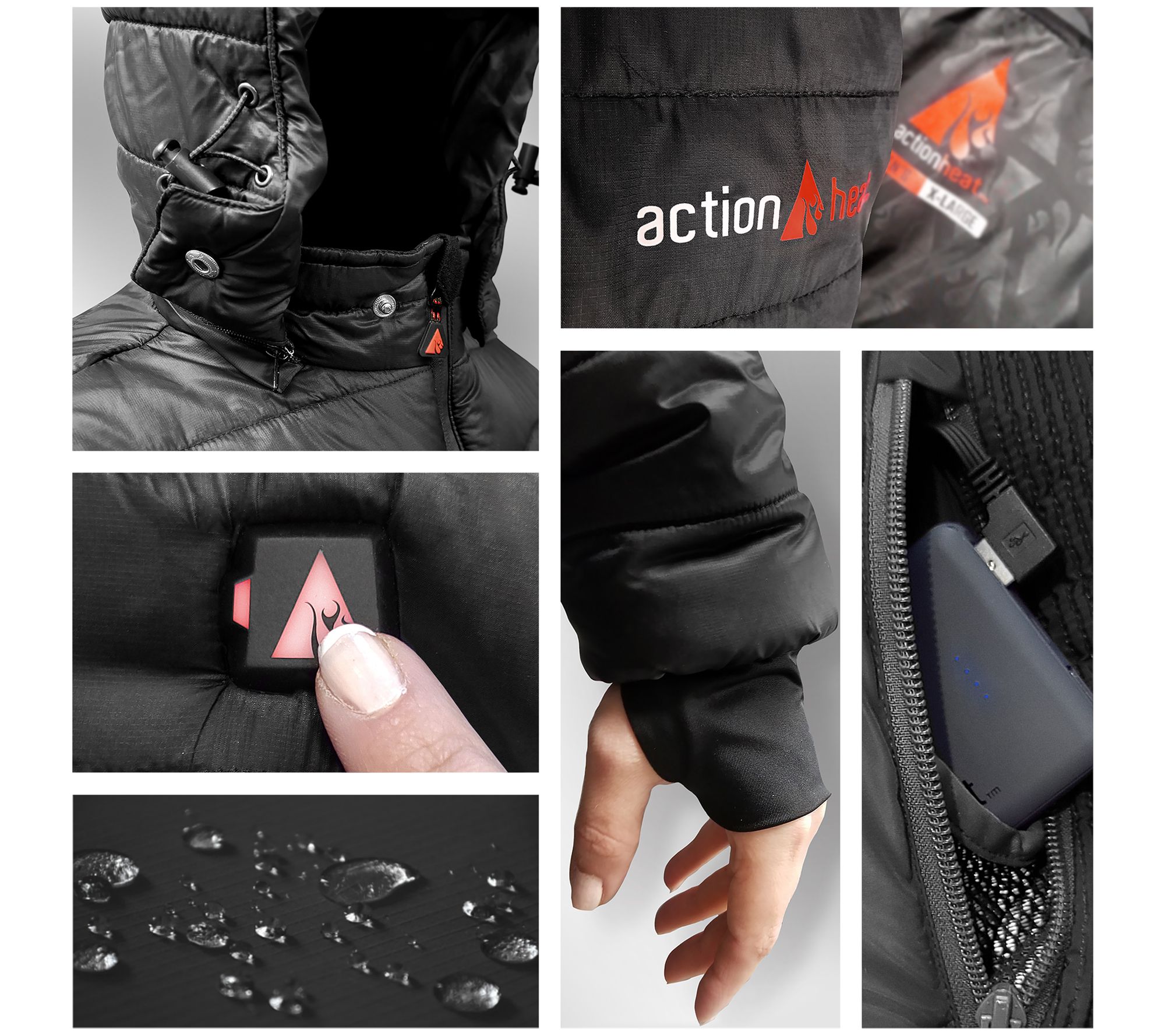 Includes ActionHeat heated jacket, 5V 6,000mAh power bank, 24" USB cable, and USB wall charger