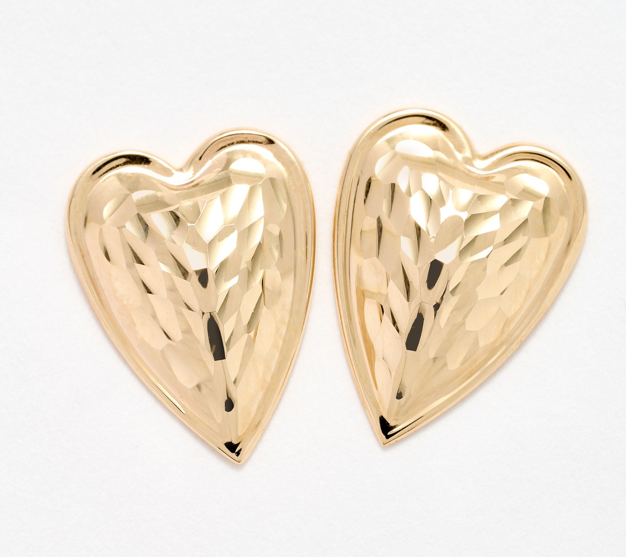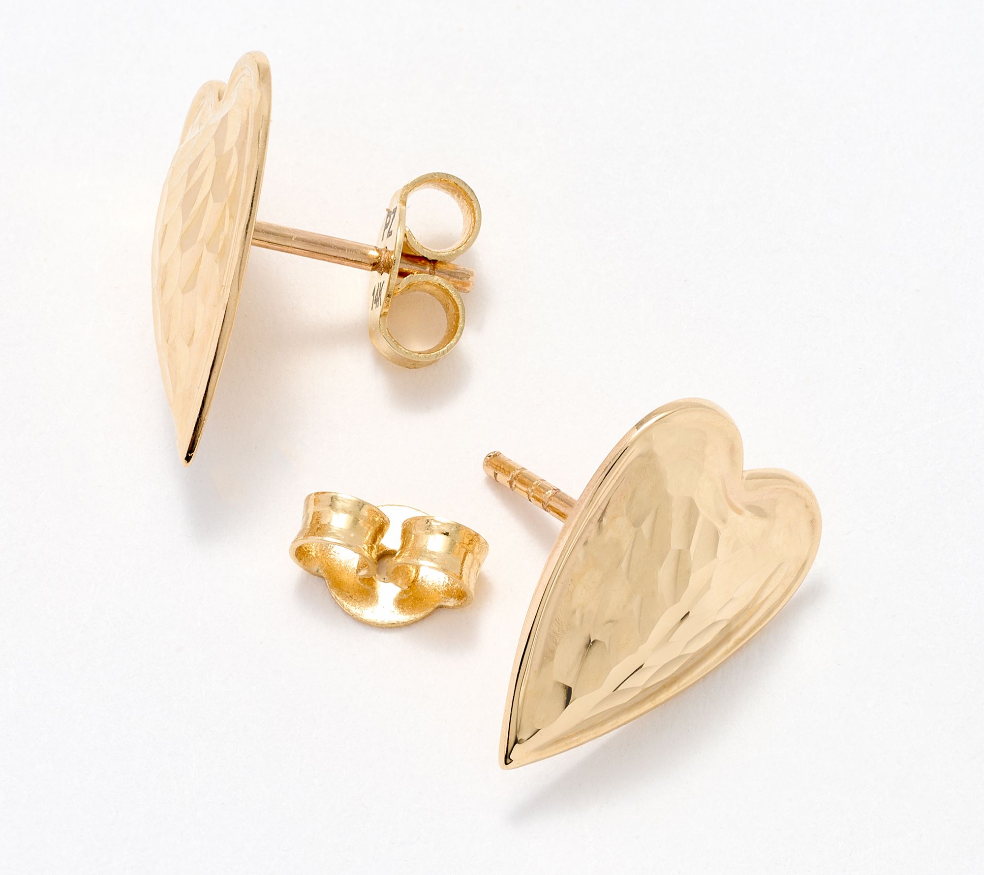 Hearts steal the spotlight, whether you're starting your day with a coffee run or meeting up for happy hour with friends. These hammered, textured studs in 14K yellow gold add a bright accent that seamlessly fits your everyday routine -- subtle yet statement-making, they bring warmth and artisanal charm to any outfit. From Adi Paz® Jewelry.