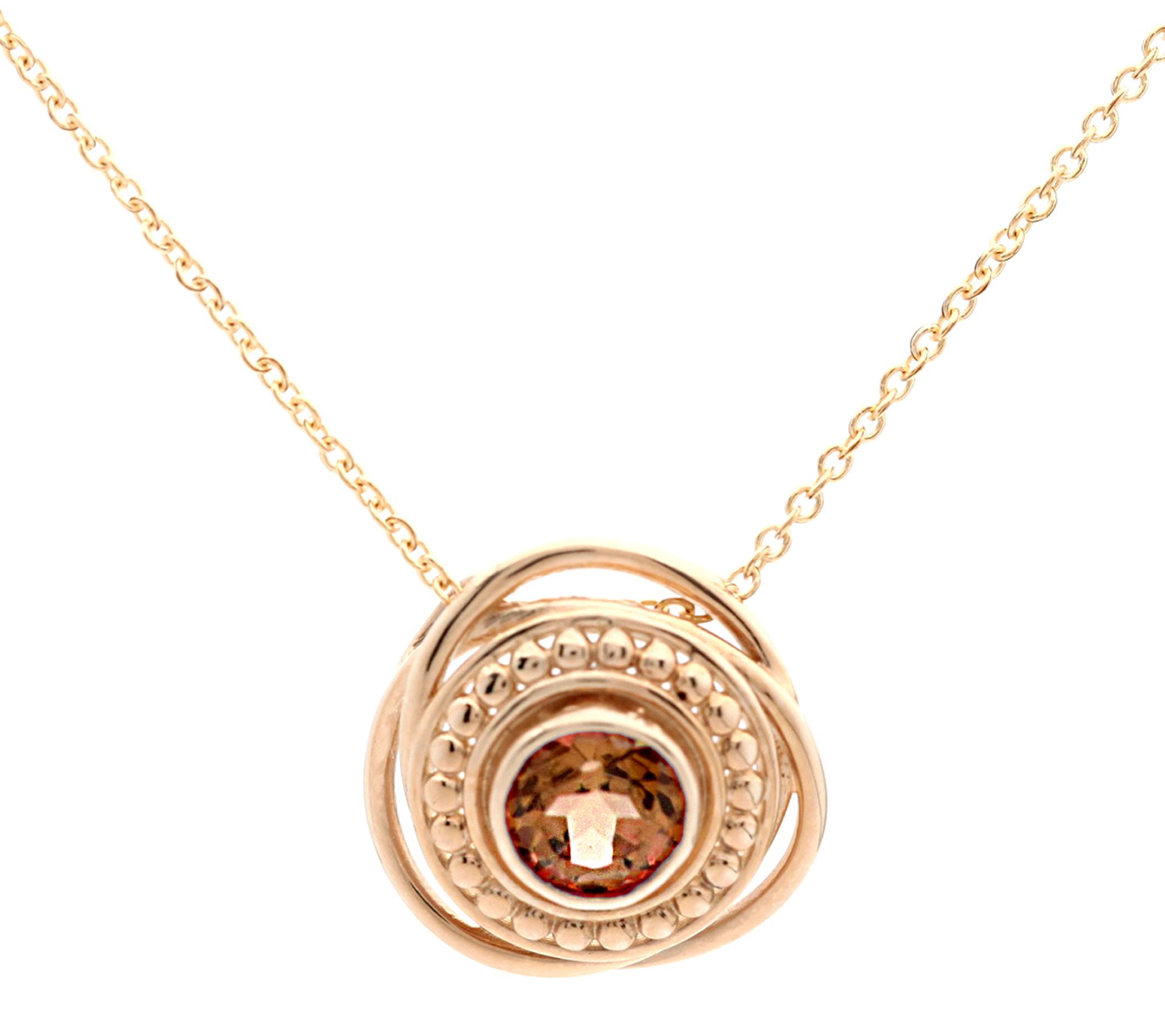 • Bezel-set round gemstone; textured finish; freeform pendant; rolo chain