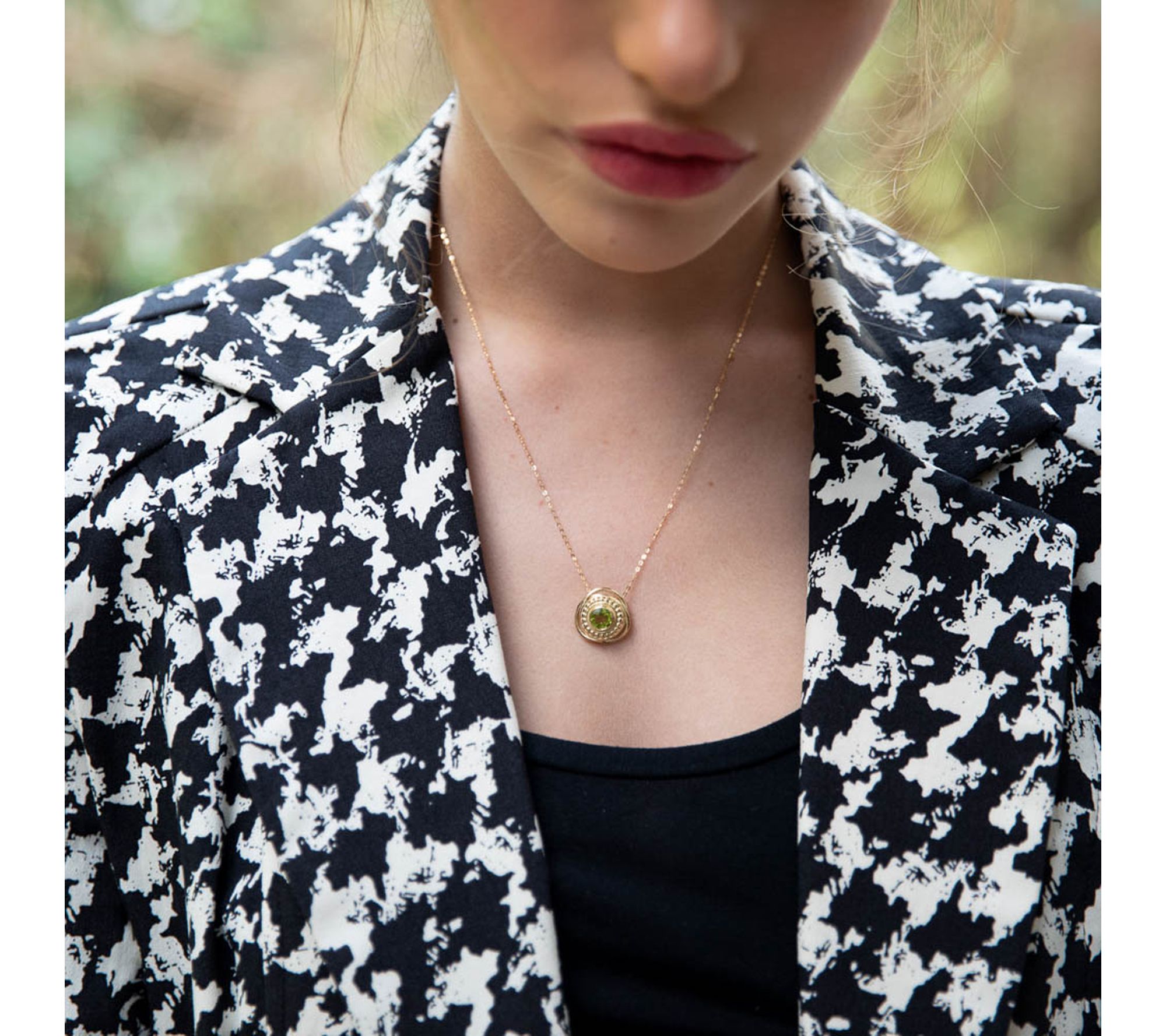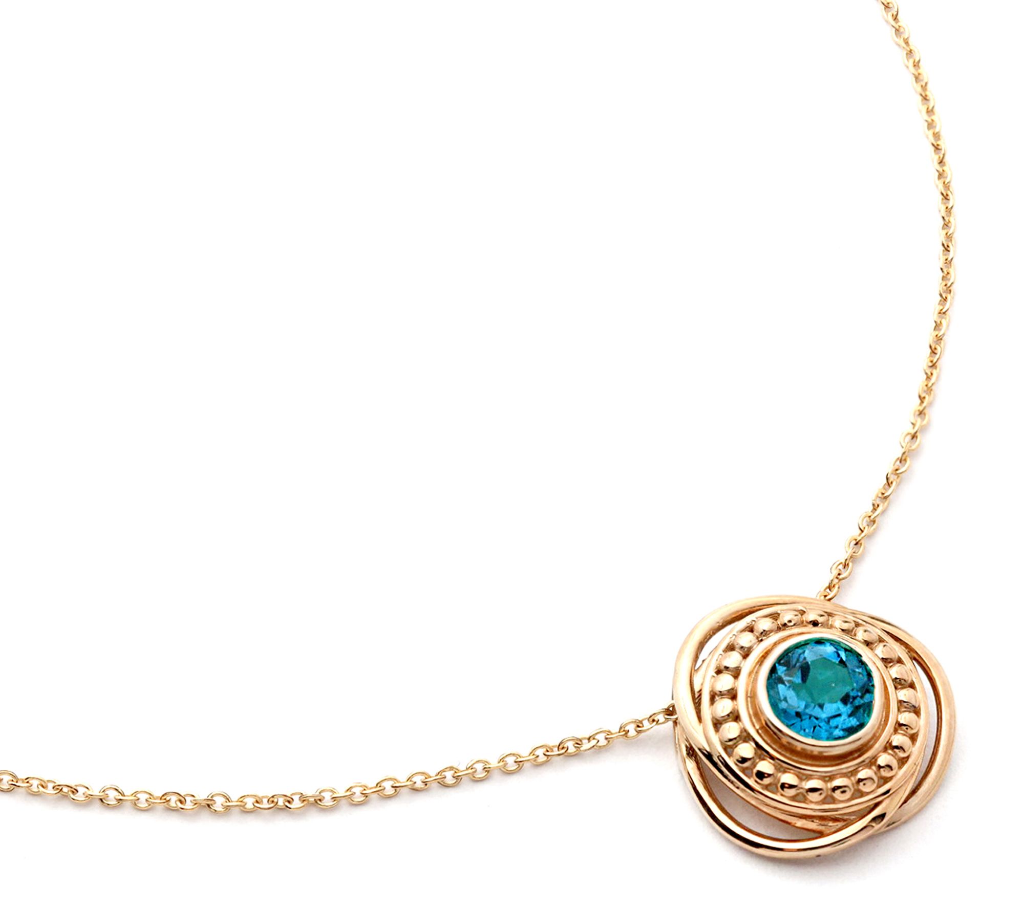 Add a splash of vibrant color to your everyday look with this textured gemstone necklace. The warmth of 14K gold pairs beautifully with your choice of round-cut blue topaz, citrine, or peridot, bezel-set for a sophisticated touch. Whether you're dressing up for an evening out or bringing a little sparkle to the office, this pendant is sure to catch the eye. From Adi Paz®.
