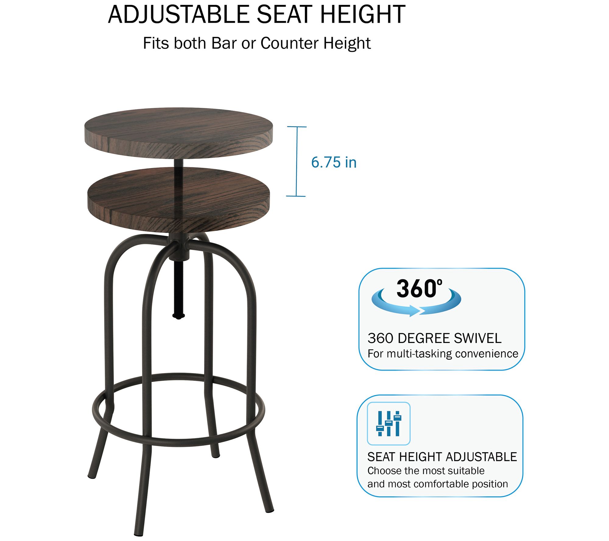Adjust the height of this swiveling bar stool to ensure seating comfort for your guests. The minimalist design complements a variety of dining room and living room decor. From Lavish Home.