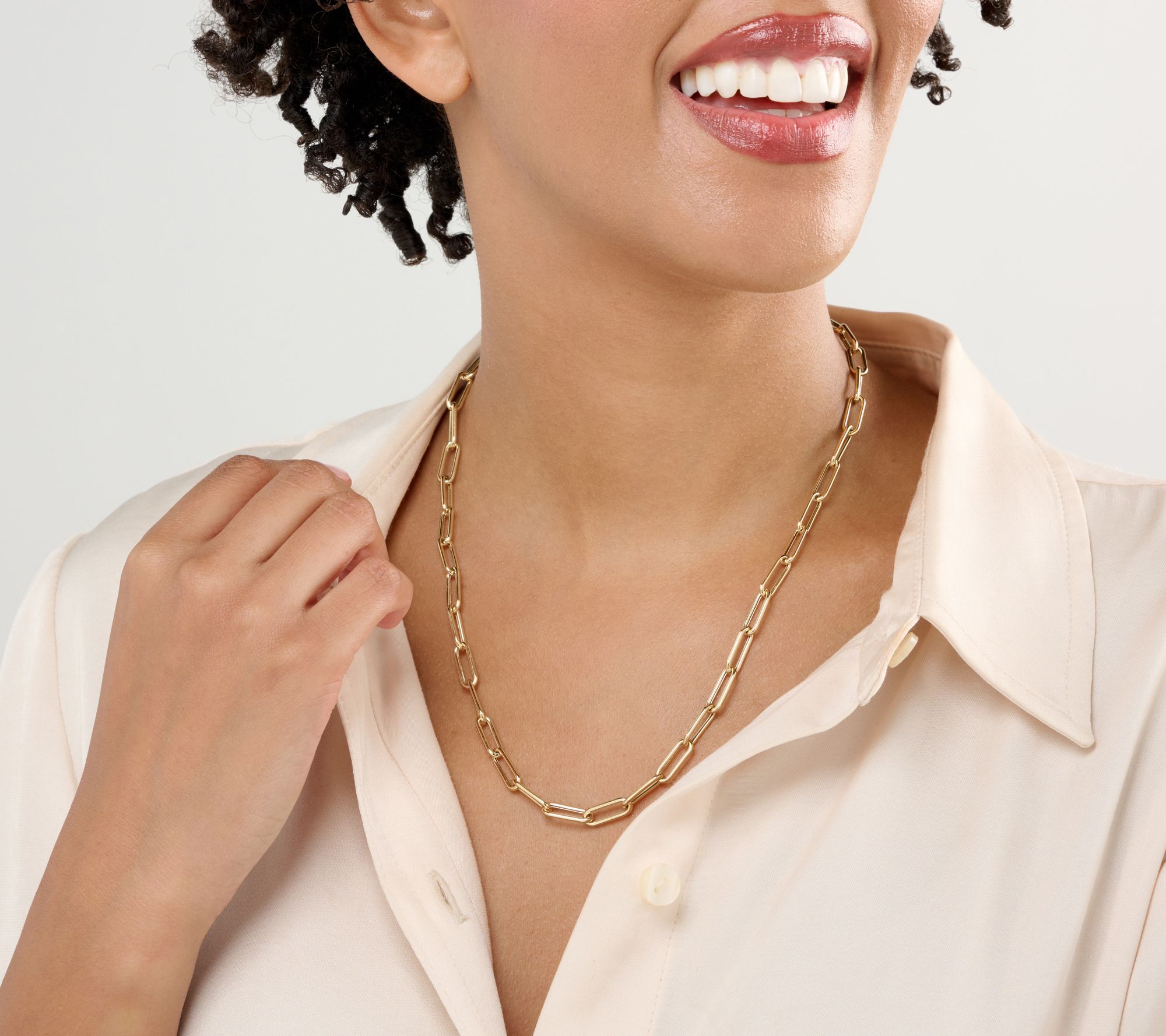 Jewelry trends may come and go but this paperclip toggle necklace will forever be fashionable. Sport this classic style for seasons to come. From Adorna.