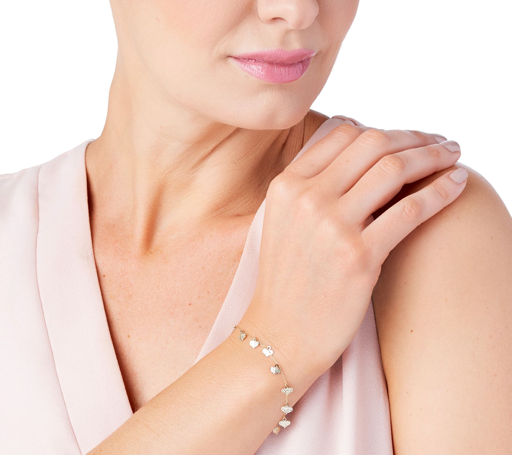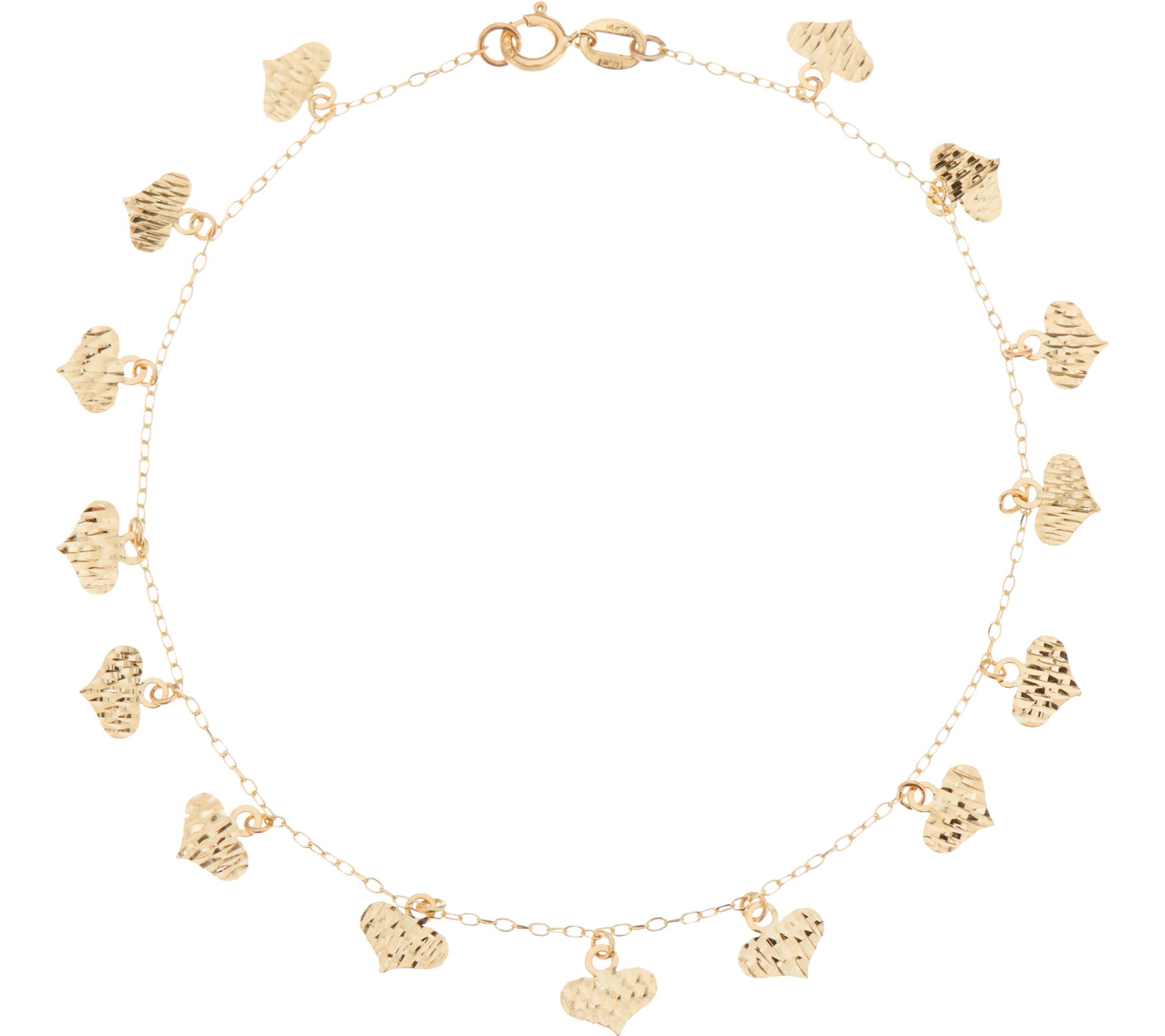 Diamond-cut hearts dangle along the entire length of this fine oval link bracelet.