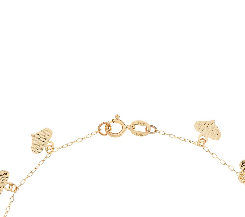Adorna14K Gold 7-1/4" Diamond Cut Heart Charm Bracelet