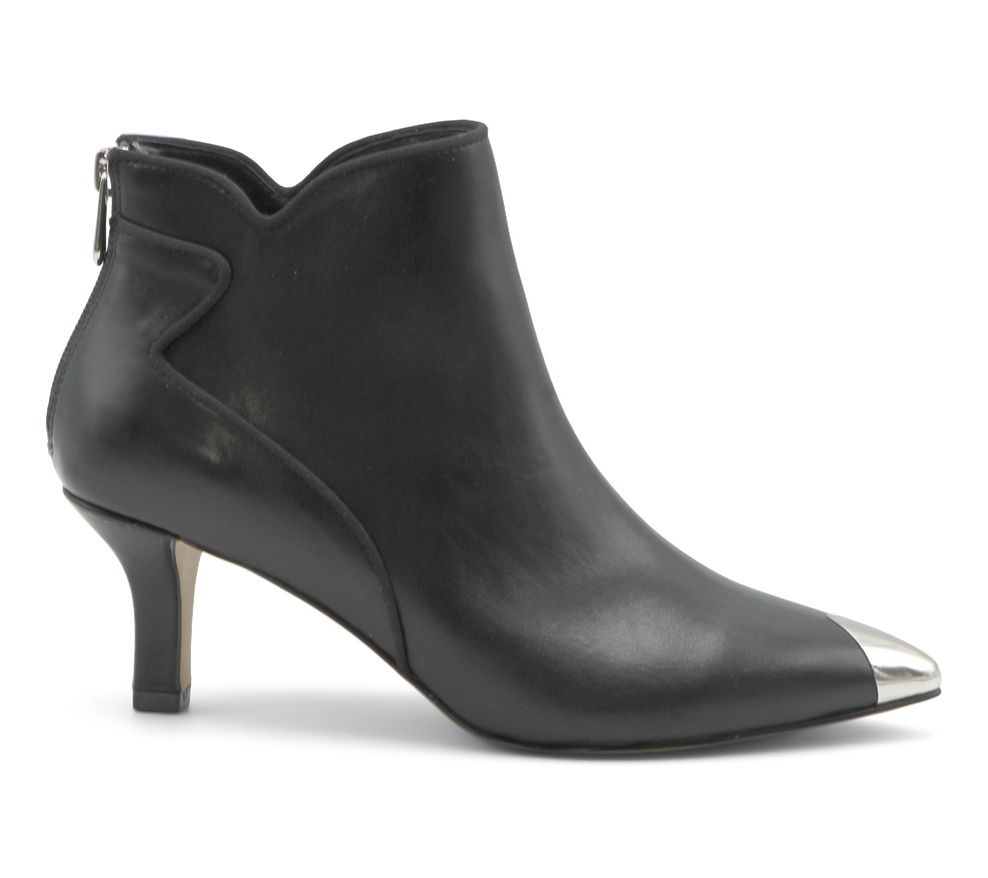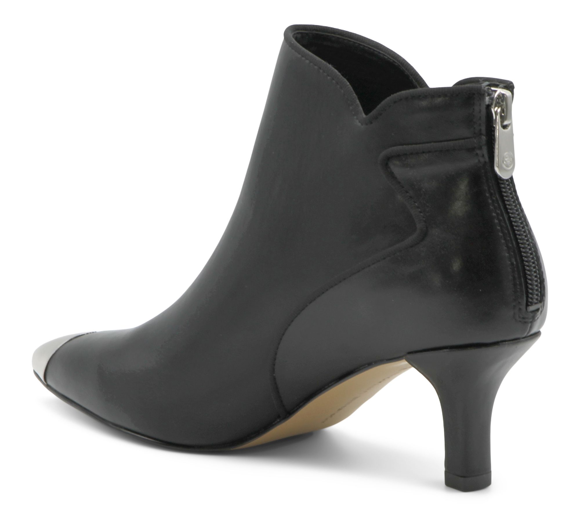 Rock your everyday style confidently with the Adrienne Vittadini Panos bootie. The capped silver toe adds a bold metallic touch to these sleek kitten heel ankle boots, making them perfect for both casual outings and night adventures. Pair these standout booties with your favorite jeans or a chic dress for a look that turns heads. From Adrienne Vittadini.