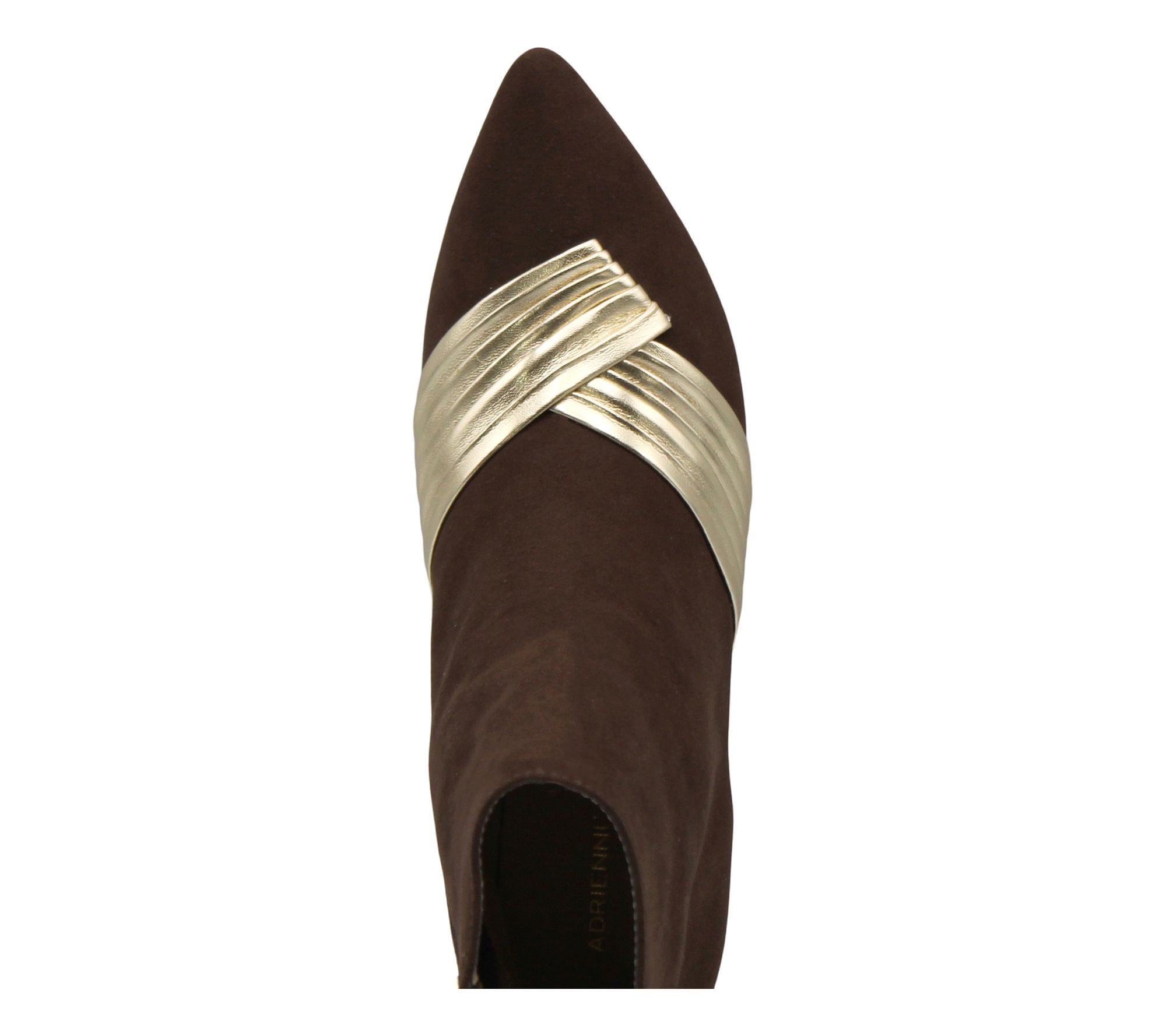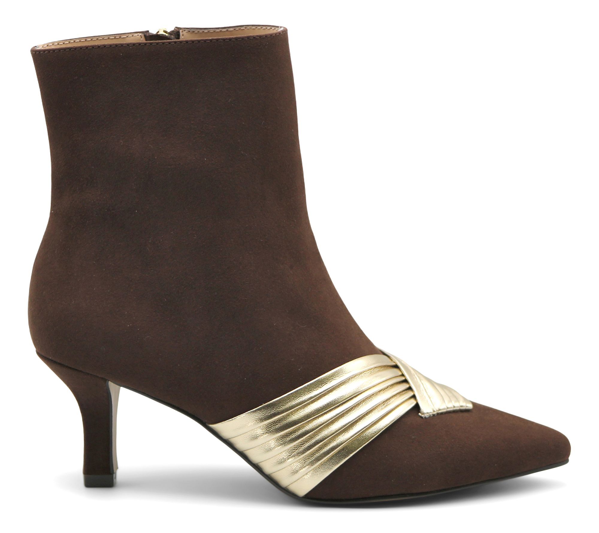 Whether you're heading to a meeting or meeting friends for a night out, these ankle booties give you a polished look with ease. The pointed toe and pleated bands redefine understated elegance, while the modest kitten heel offers just the right amount of lift. From Adrienne Vittadini.