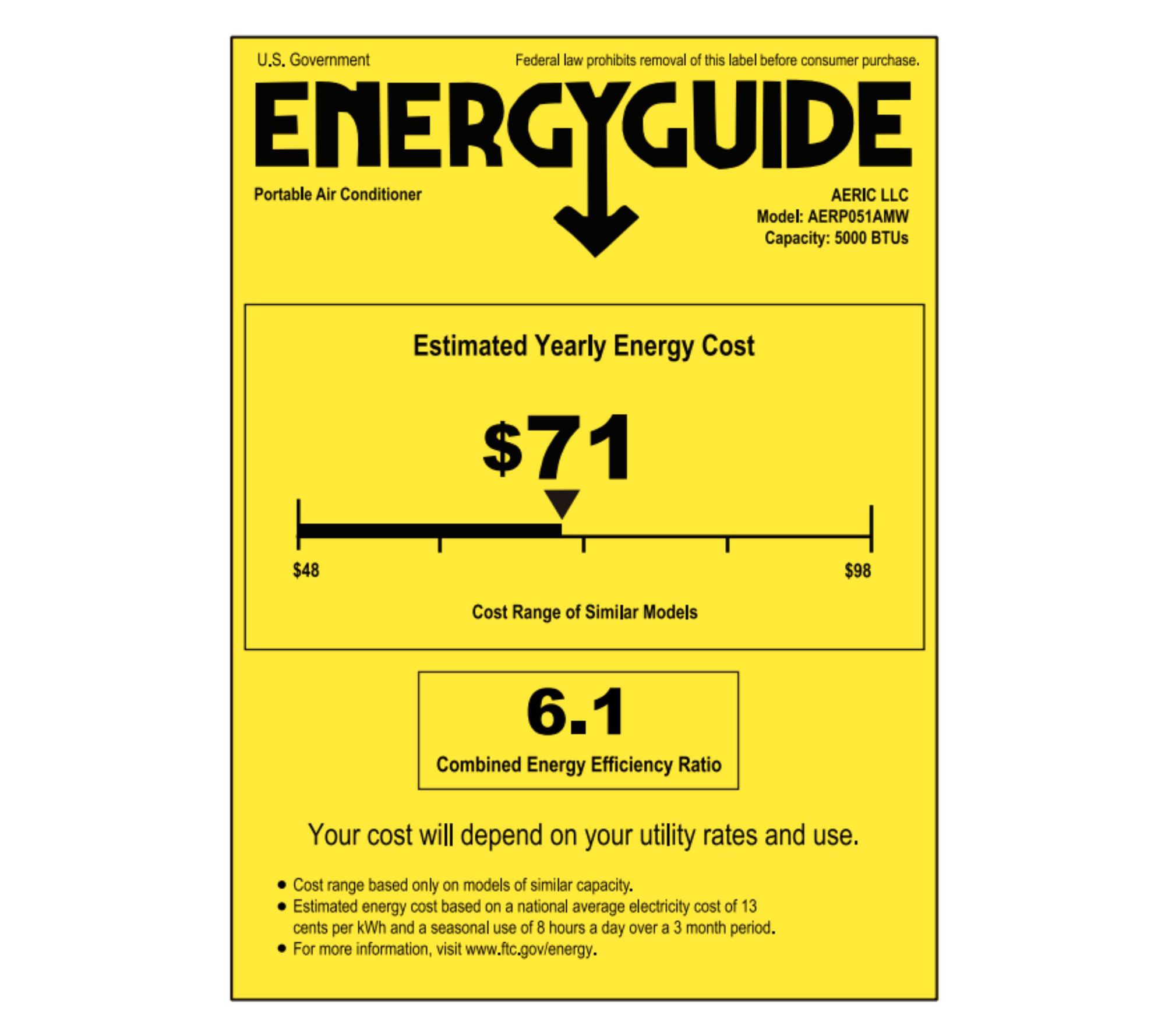 • 5,000 BTU (DOE); 8,000 BTU ASHRAE standard