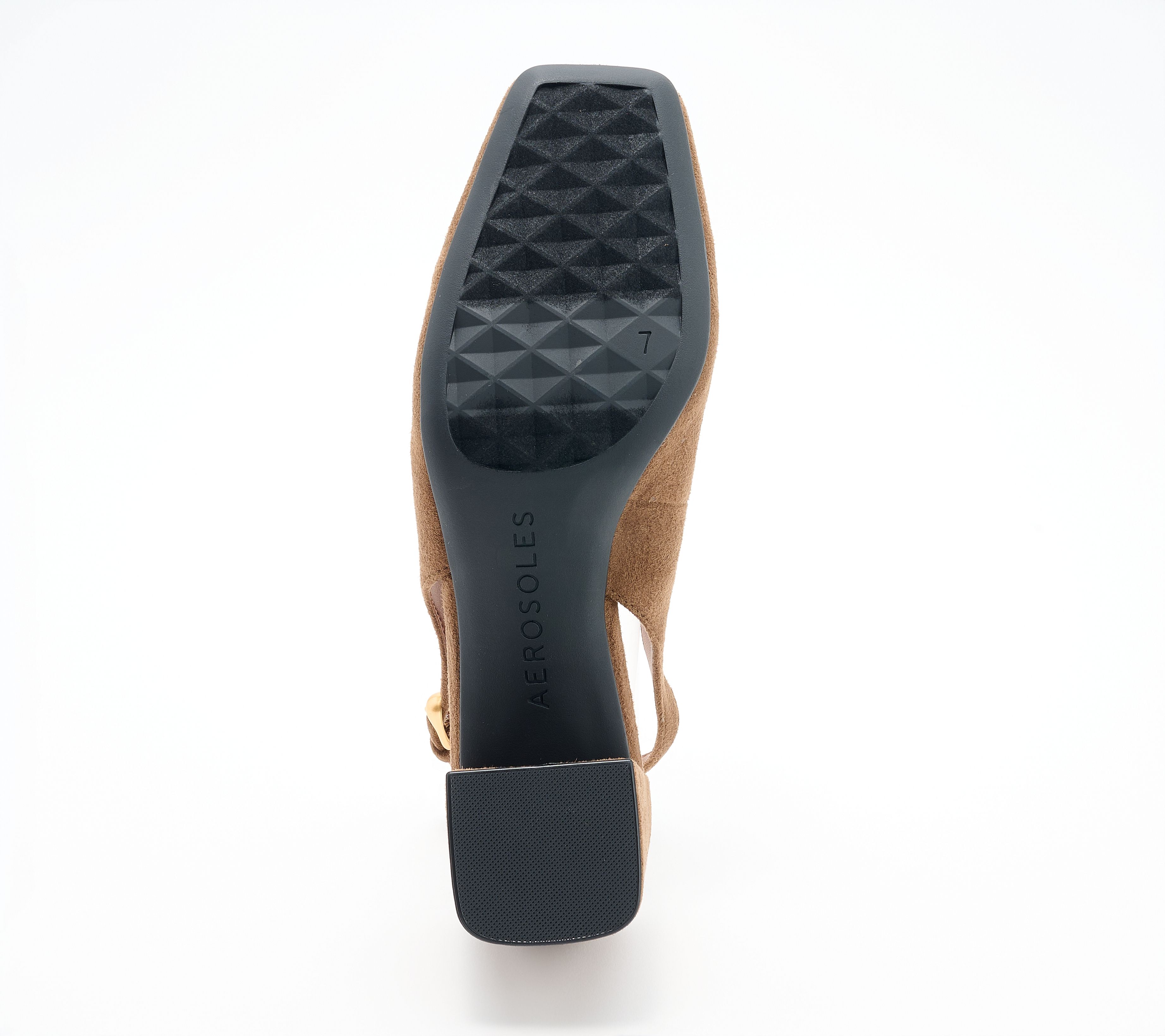 Polished and modern, these sling-back pumps are ready for anything from office meetings to after-hours occasions thanks to a supportive Ortholite foam insole and flexible Diamond Flex outsole. The square toe and adjustable strap provide a blend of comfort and tailored style, making them a chic match for your favorite dress or trousers. From Aerosoles.