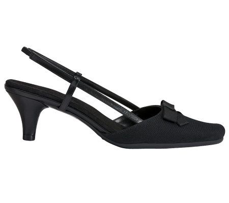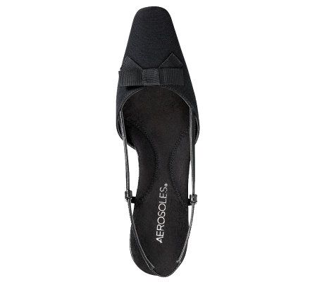 Take a bow. You deserve recognition for your impeccible taste in dress shoes. The leather straps, fabric upper, and cushioned insole are topped off with--a bow, of course. From Aerosoles.