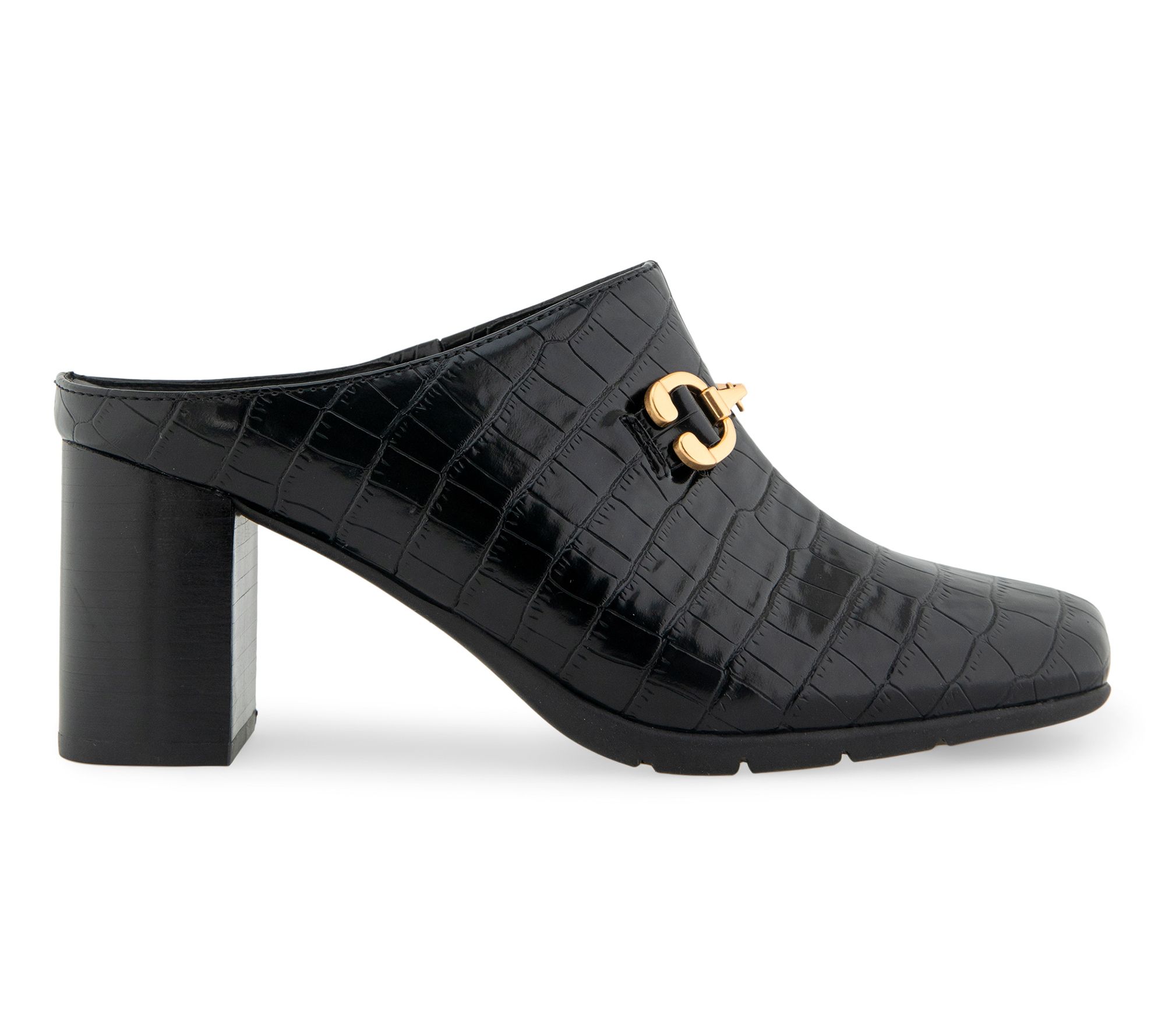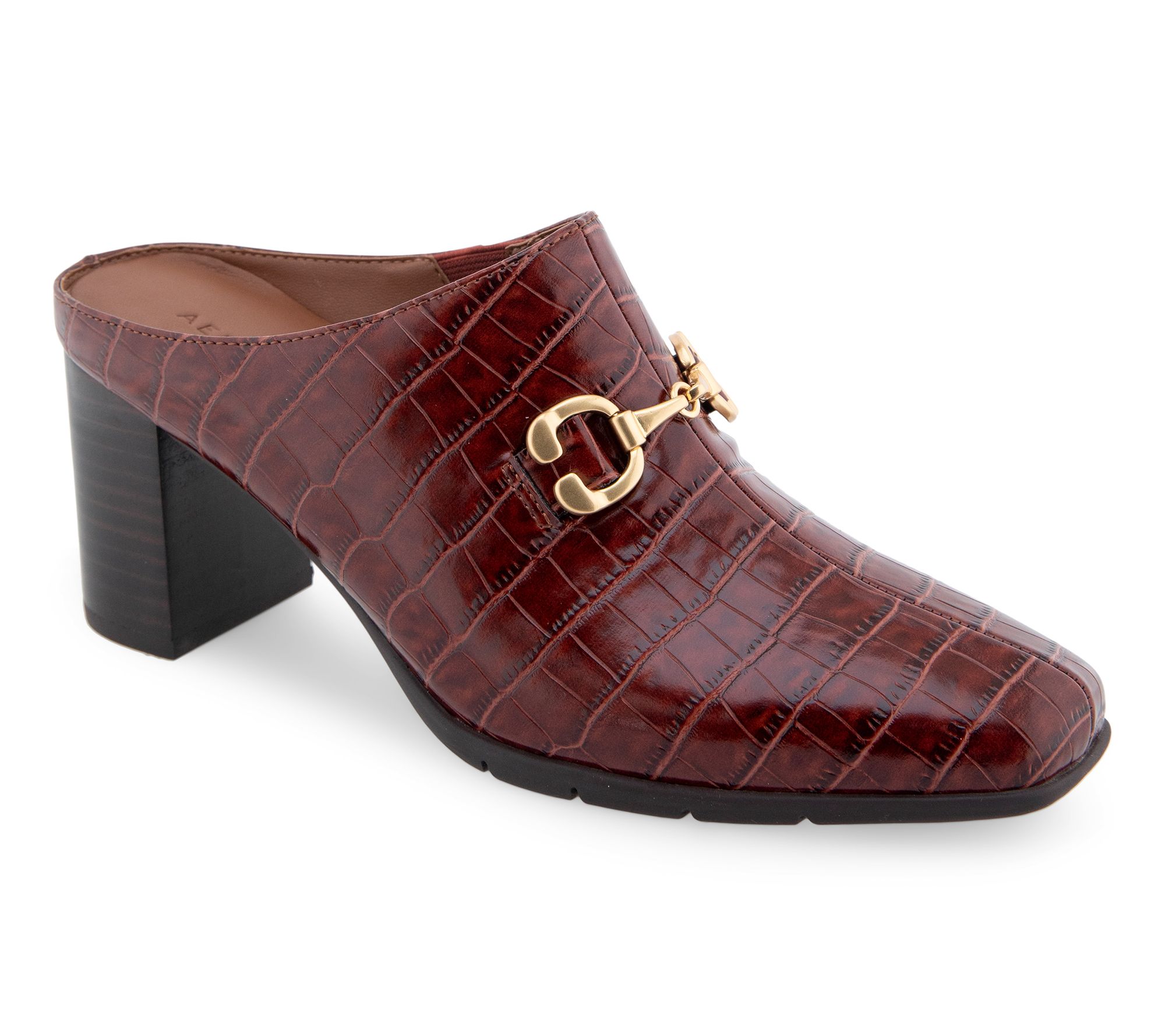 Step into effortless style with the Aerosoles Mason heeled mules. Featuring an open back structure and a block heel, these mules offer a sleek silhouette perfect for any occasion. The metallic ornament adds an eye-catching embellishment, ensuring you stand out in comfort and elegance. From Aerosoles.