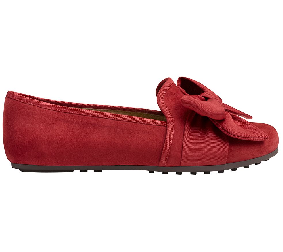 The classic and comfy driving shoe gets a dramatic upgrade with a statement-making bow and soft suede design in rich jewel-tone colors. From Aerosoles.