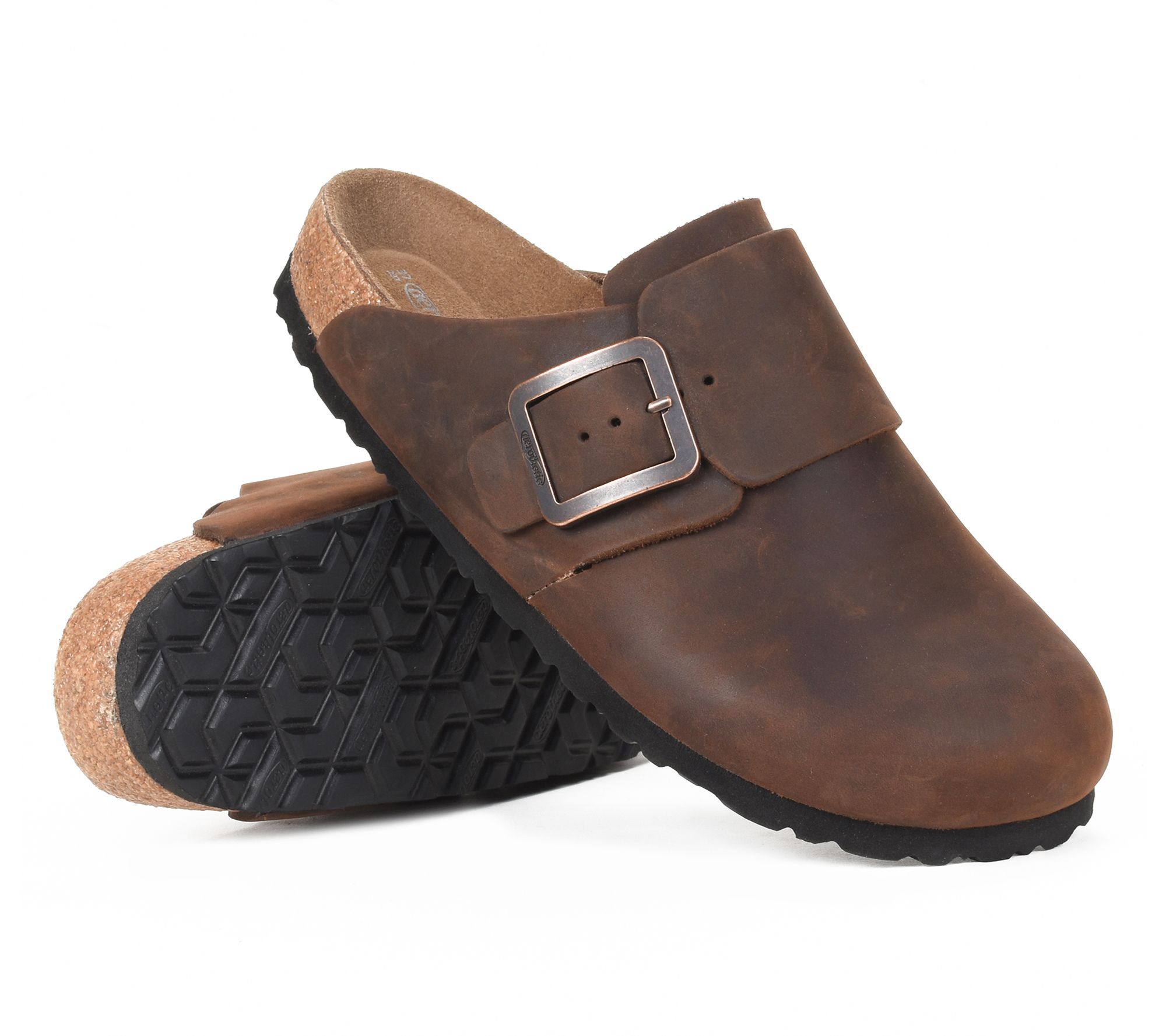 Keep your feet happy and supported with the Dakota from Aerothotic. Perfect for fall through spring, these genuine leather clogs feature a durable EVA outsole for lightweight cushioning and a cork footbed that molds to your foot for personalized comfort. Whether you're running errands or spending the day on your feet, the built-in arch support and deep heel cup provide all-day comfort. From Aerothotic.