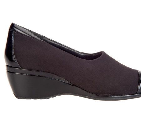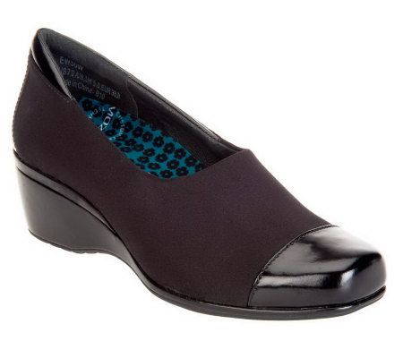 You've found it--a wedge that looks as superb as it feels! With a stretch vamp and a padded heel that conforms to your foot, it adds height without the hurt. A polished leather cap toe and mosaic footbed keep things stylish. From Aetrex.
