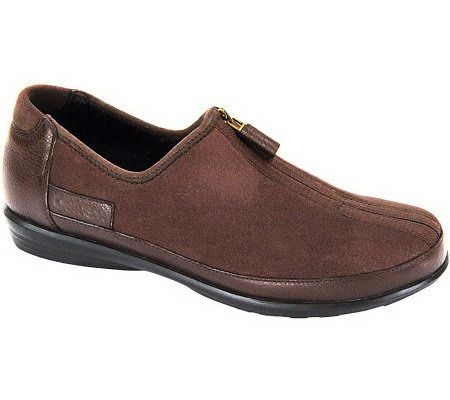 Featuring a Lynco orthotic footbed with a memory foam cushion--these zip-on shoes will be your go-to pair to wear here, there, and everywhere! A sleek stretch upper with chic accents add visual appeal to the ultra-comfortable footwear. From Aetrex.