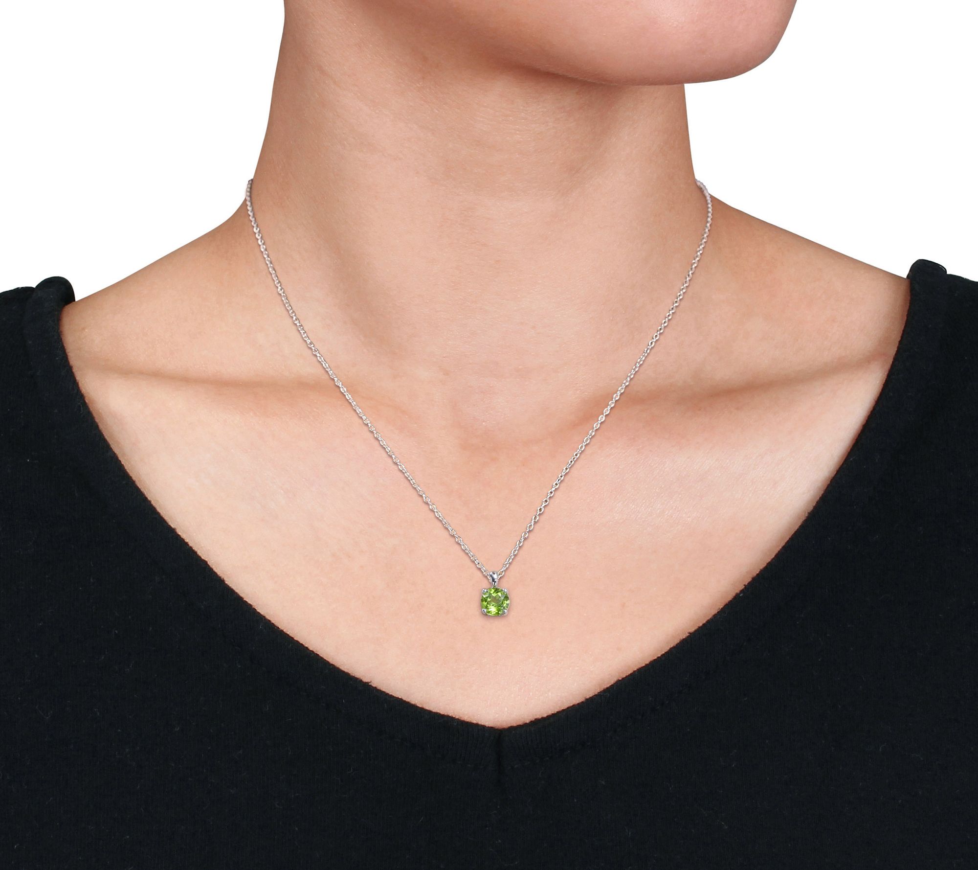 Bring the bling to any ensemble with this gorgeous sterling silver peridot gemstone solitaire earrings and necklace set. From Affinity Gems.