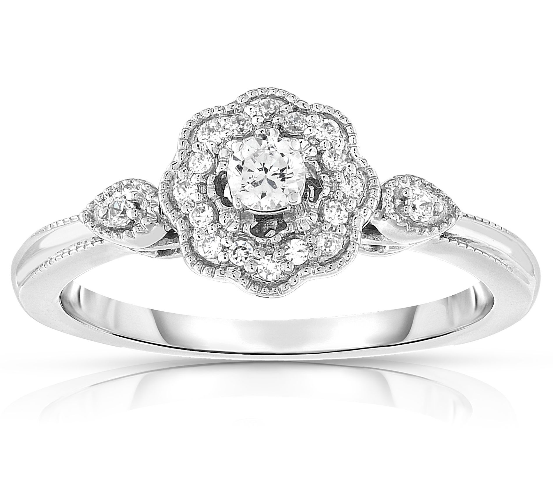 Affinity 0.20 Cttw Diamond Floral Ring, 14K Whi te Gold