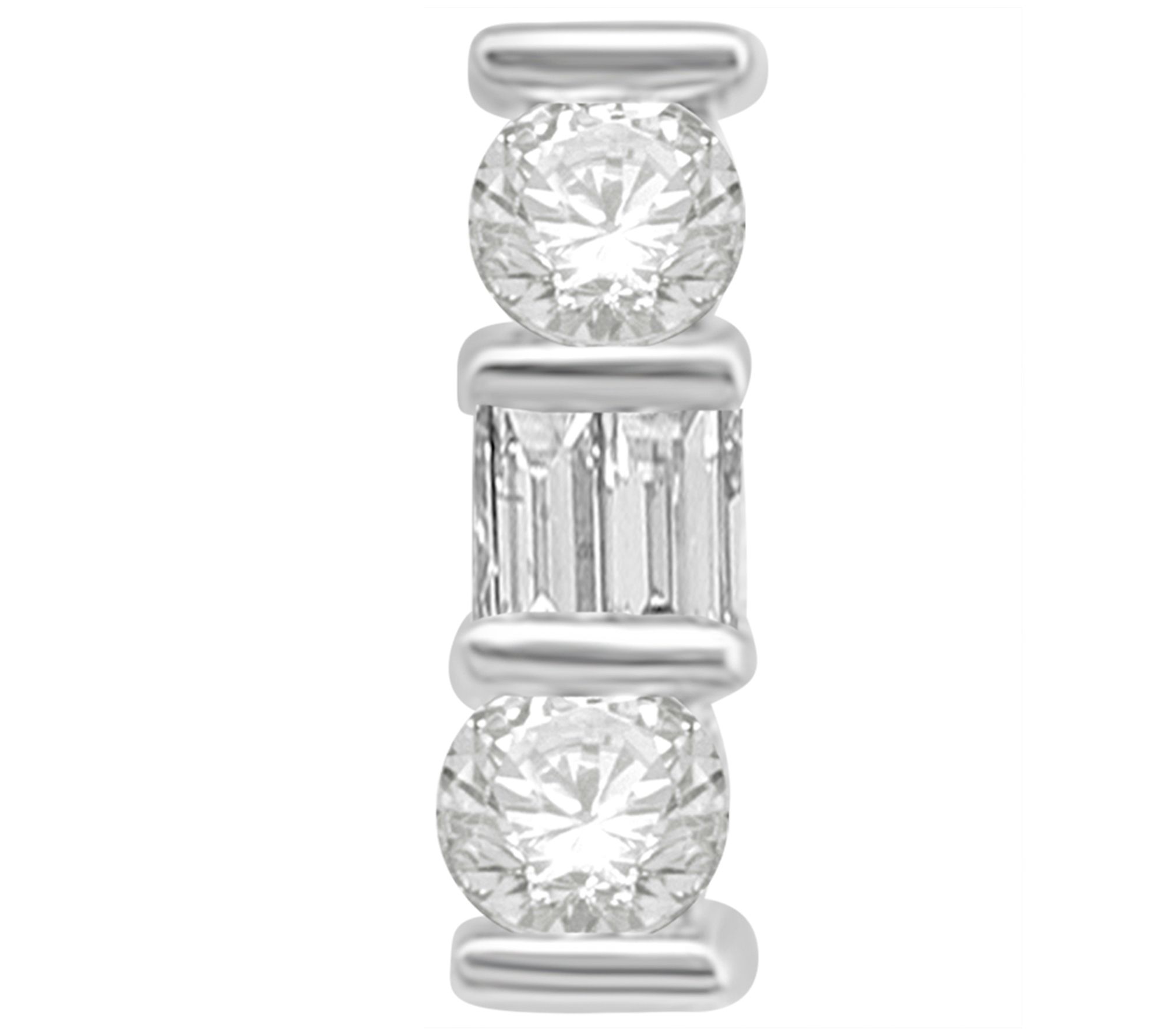 • Two baguette, tension-set diamonds between two round, tension-set diamonds