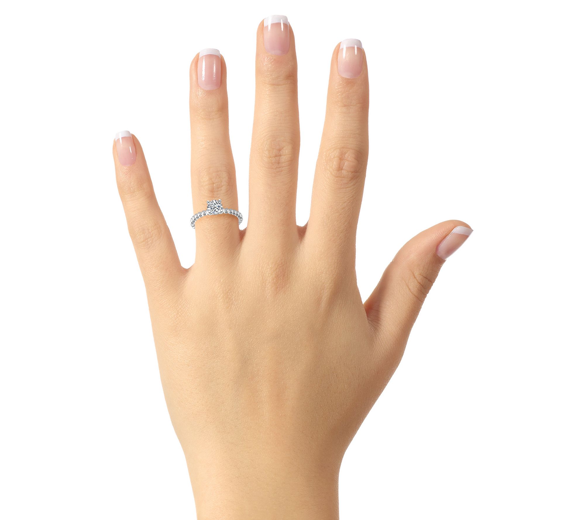 A beaded band and a brilliant solitaire diamond are a match made in heaven on this 14K gold engagement ring. From Affinity® Diamond Jewelry.