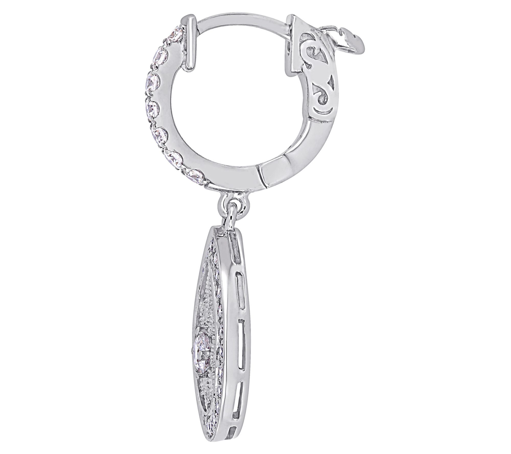 • Diamond embellished hoops; teardrop filigree drop with round, prong-set and pave-set diamonds