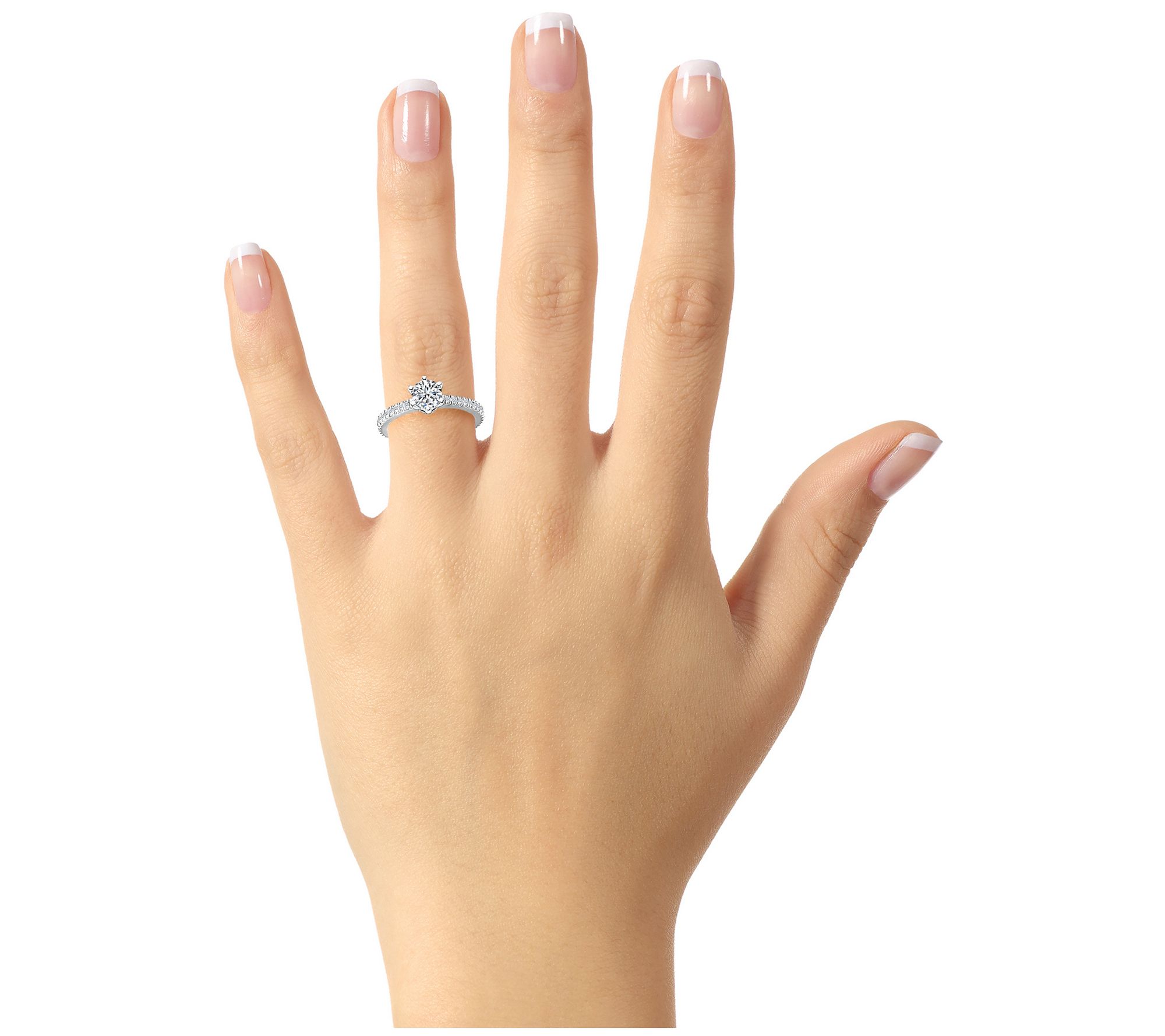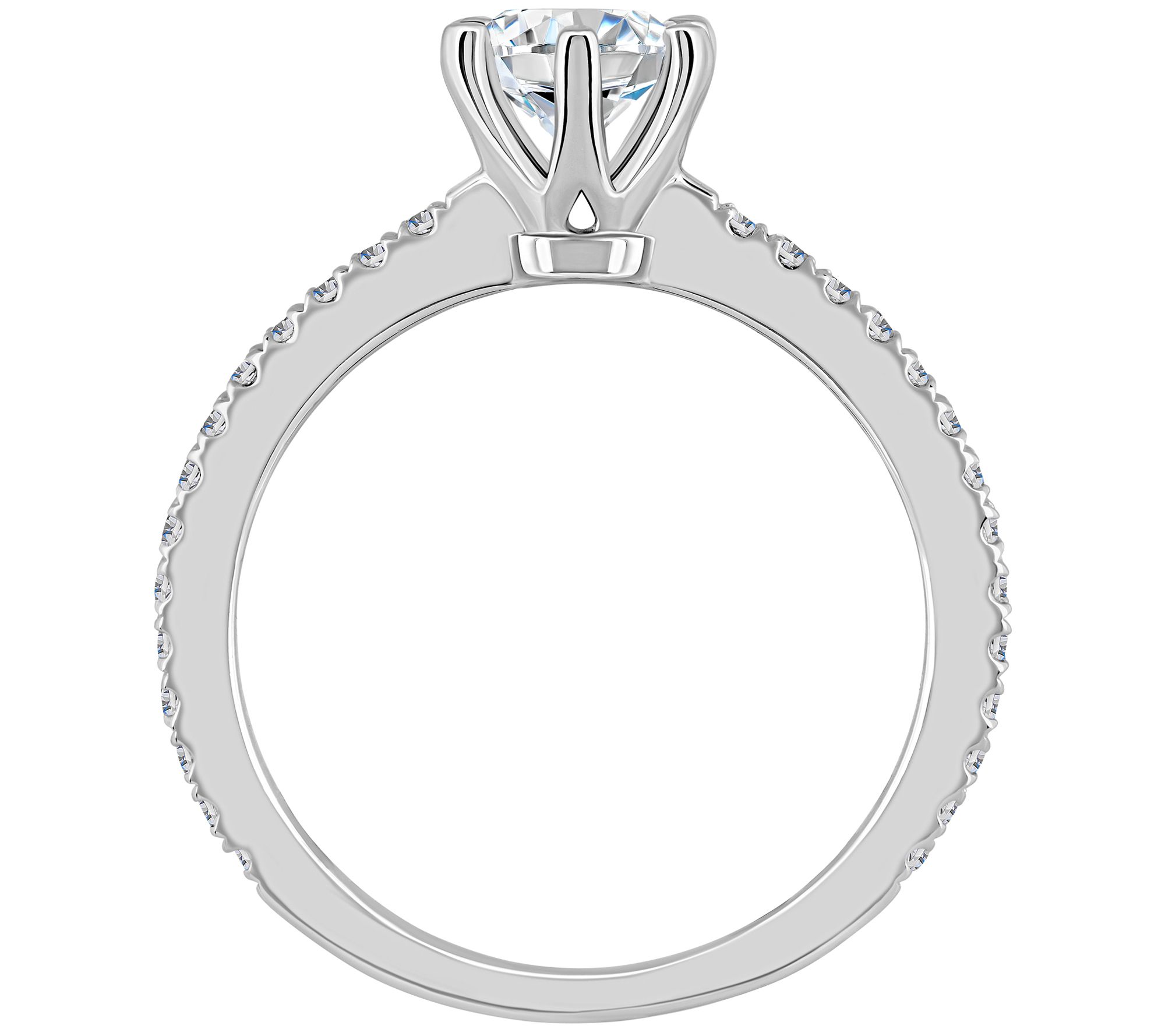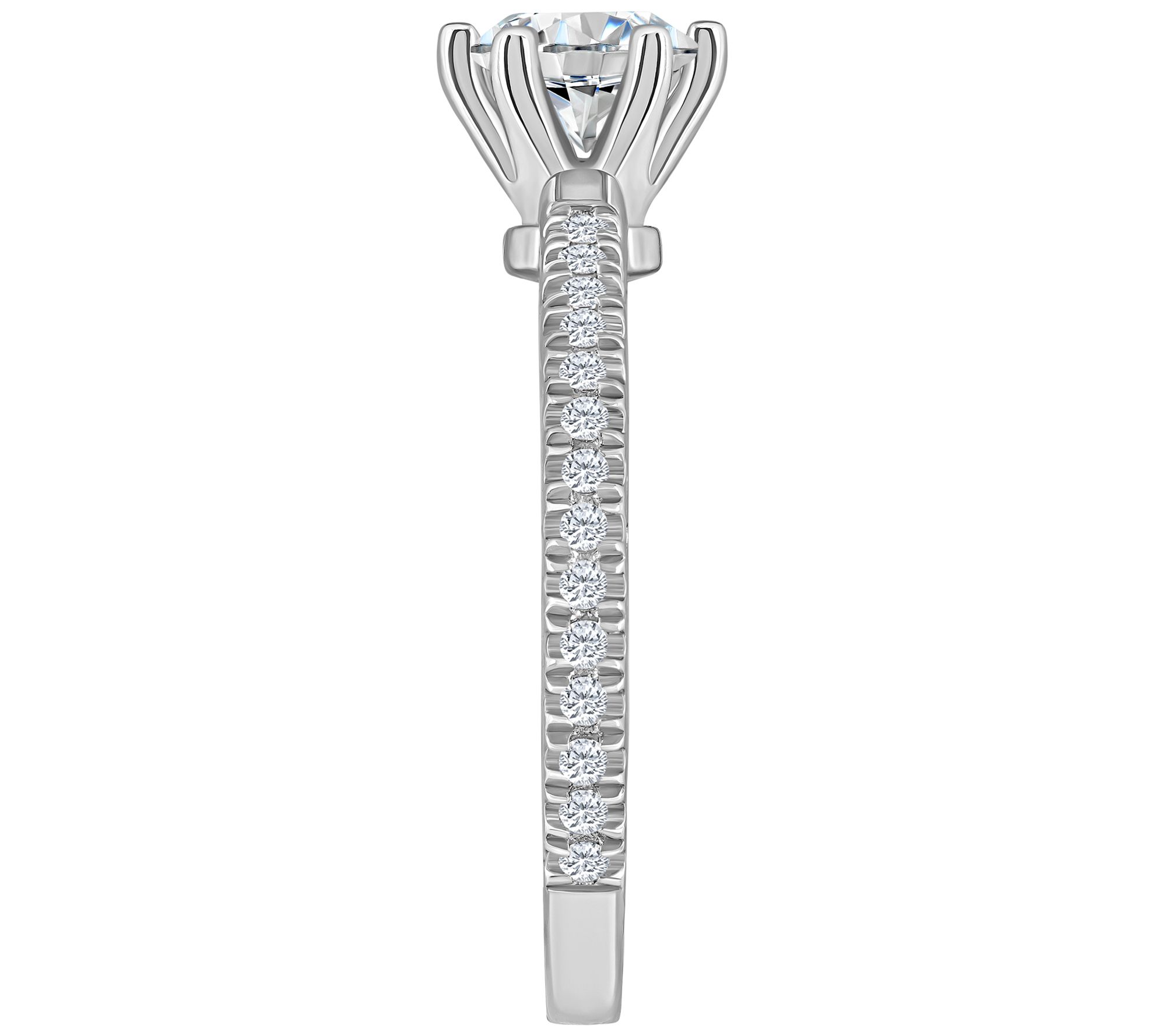 Elegant yet endearing, this promise of forever features a gorgeous diamond at the center and a sparkling set of diamonds along the shank. Say yes to this timeless piece -- an eternal sign of your love. From Affinity® Diamond Jewelry.