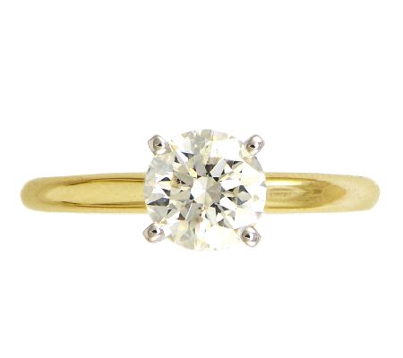 Forever starts here. Make this classic, four-prong Affinity Diamond solitaire ring--hand-casted in 14K yellow gold--your first step on the path to happily ever after. From Affinity(R) Diamond Jewelry.