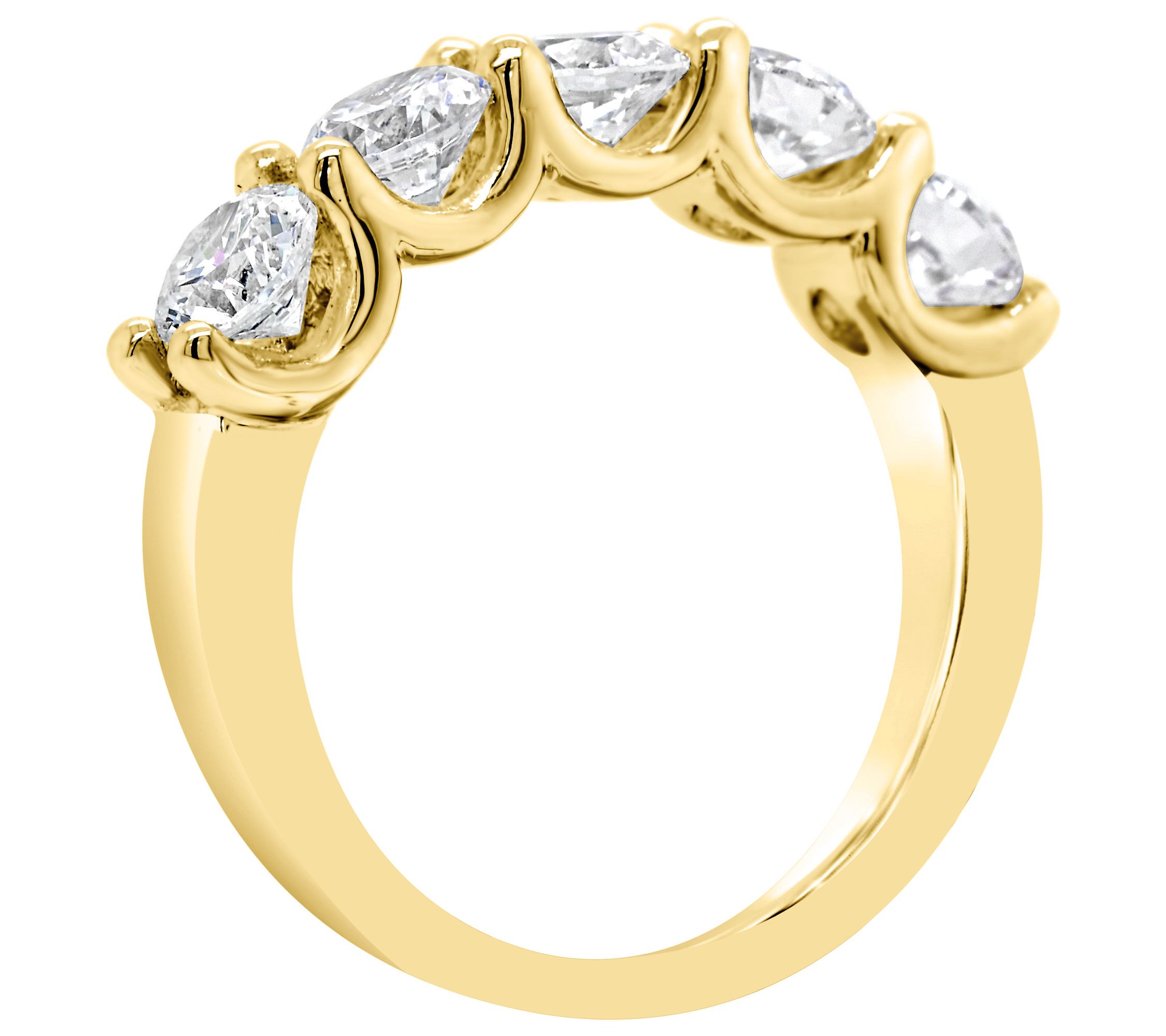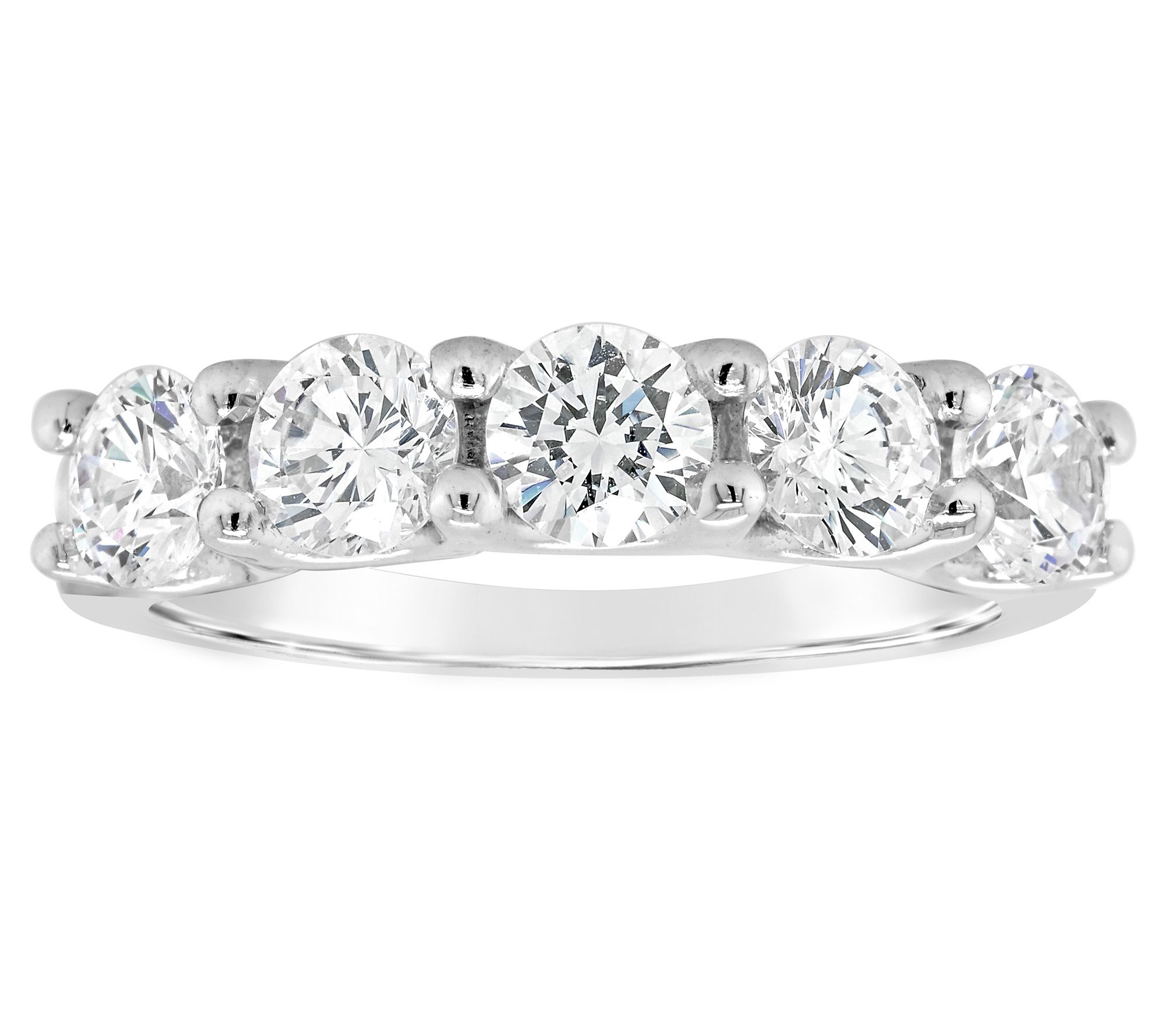 • Five-stone design with prong-set diamonds