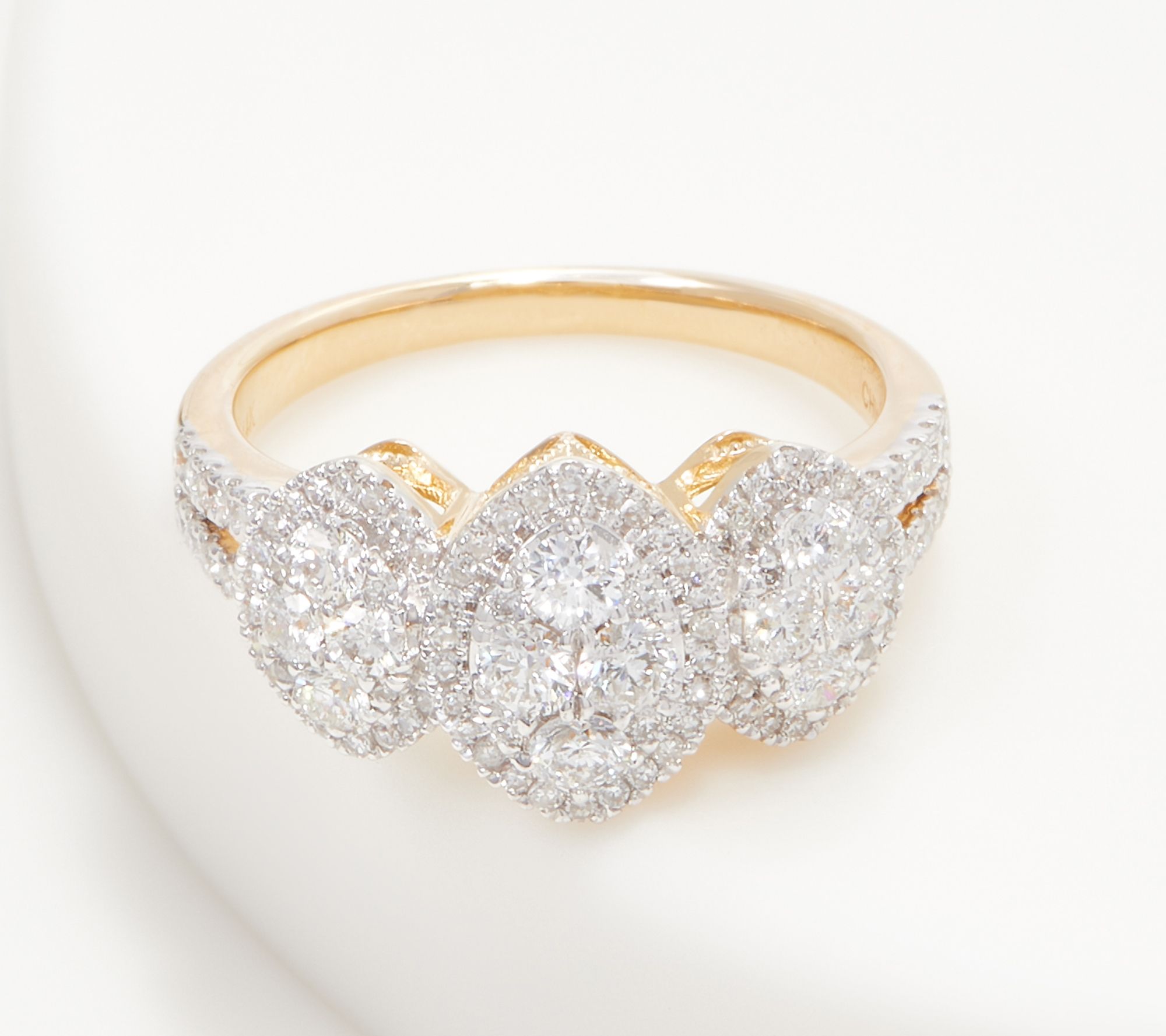 Affinity 14K Gold Marquise Triple Cluster Diamond Ring, 1.00cttw