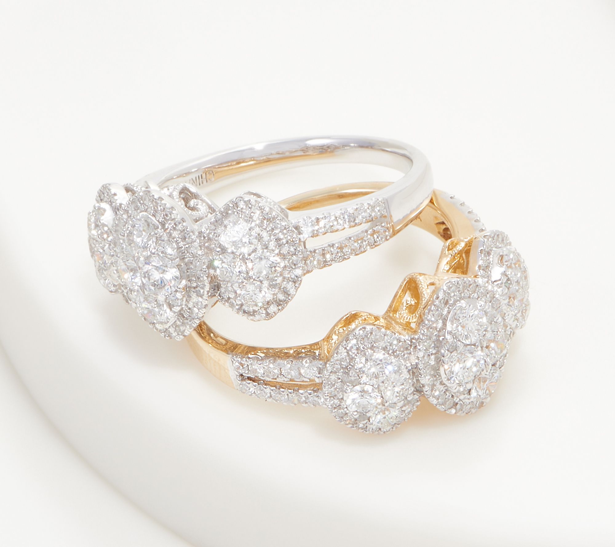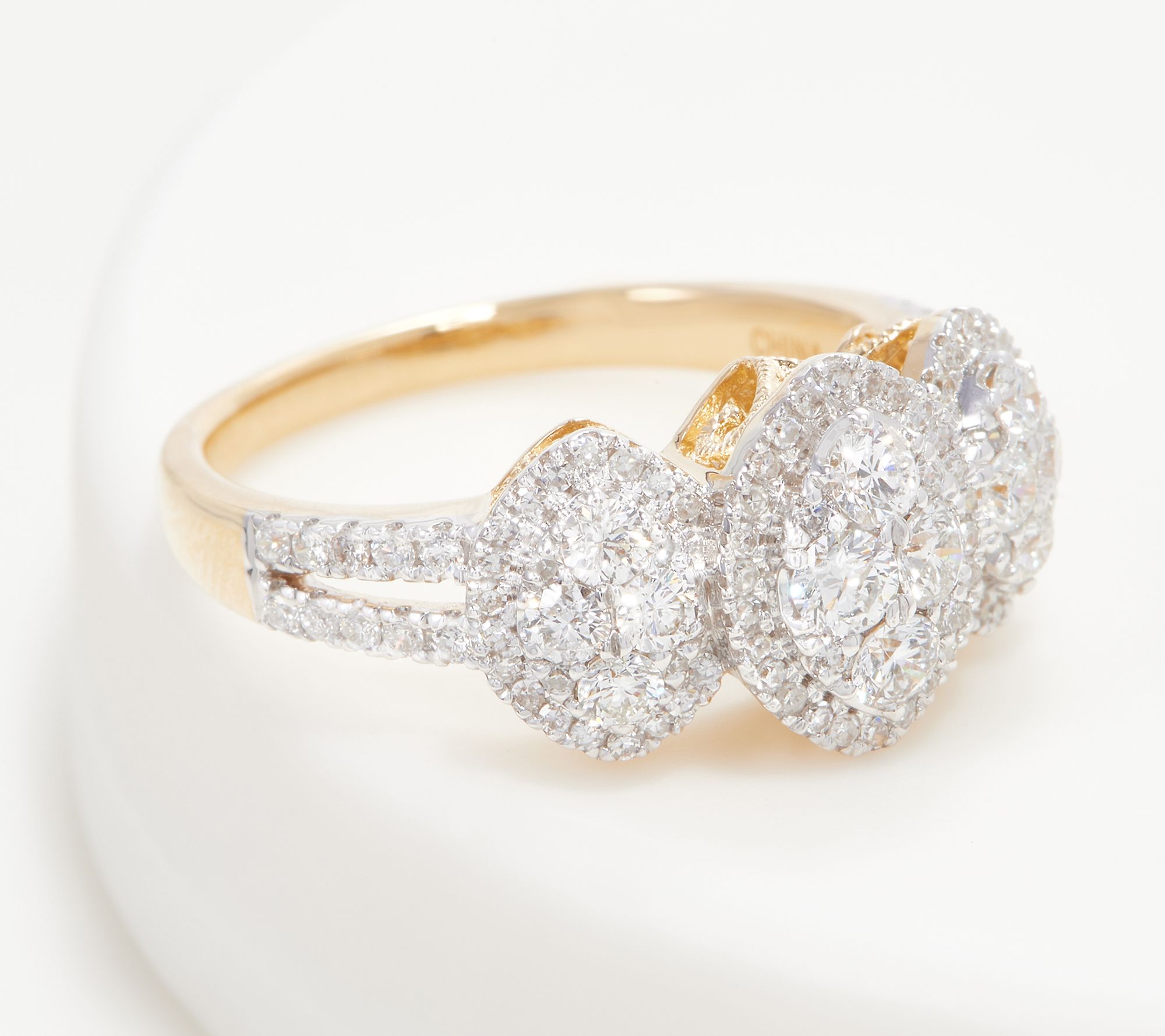Signify your past, present, and future with this triple diamond cluster ring. Diamonds light up the 14K gold design to remind you of the brilliance that brought you here, the beauty of now, and the brightness of the future. From Affinity® Diamond Jewelry.