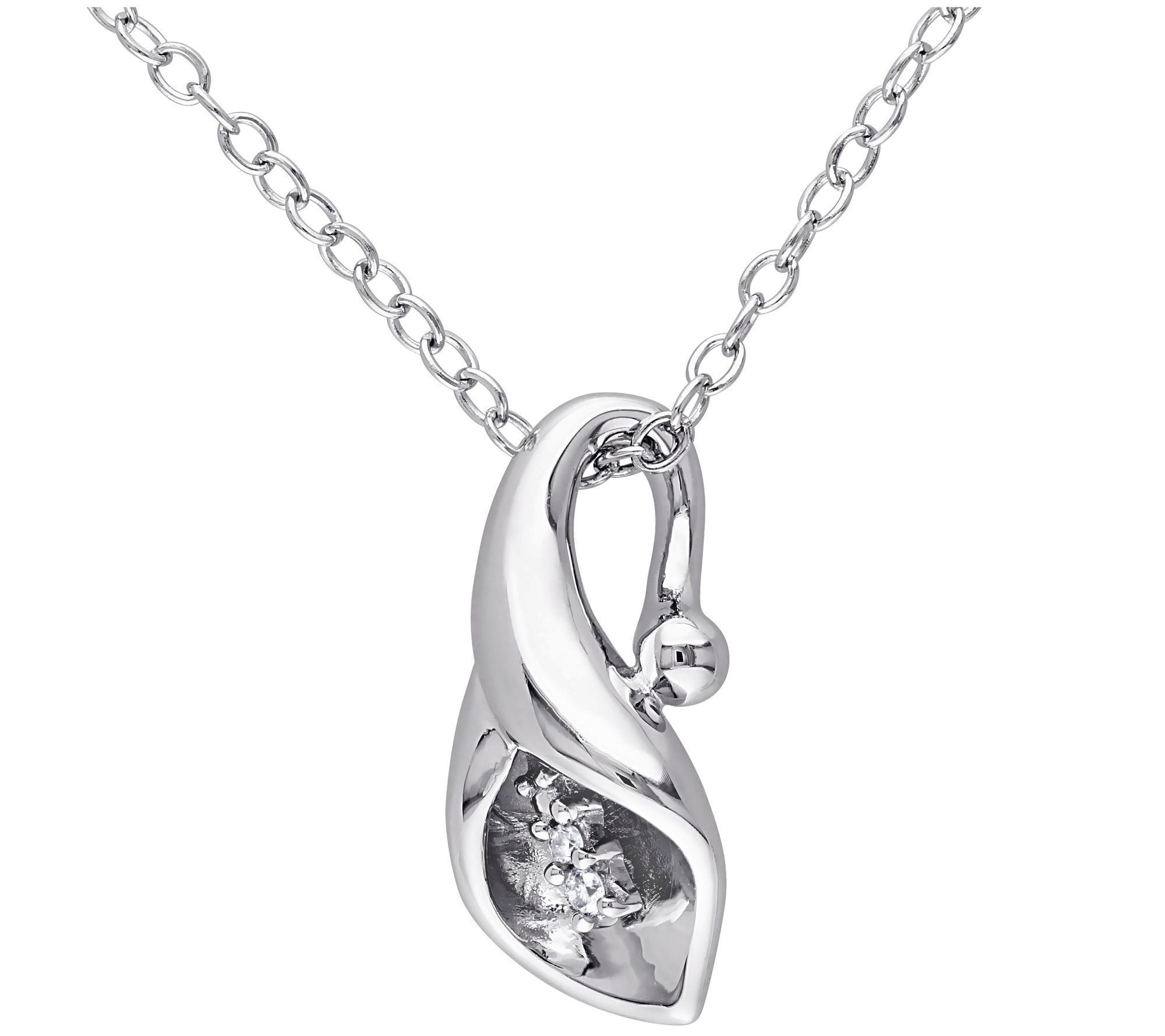 Calla lily pendant with round-cut, prong-set diamond accents; polished finish