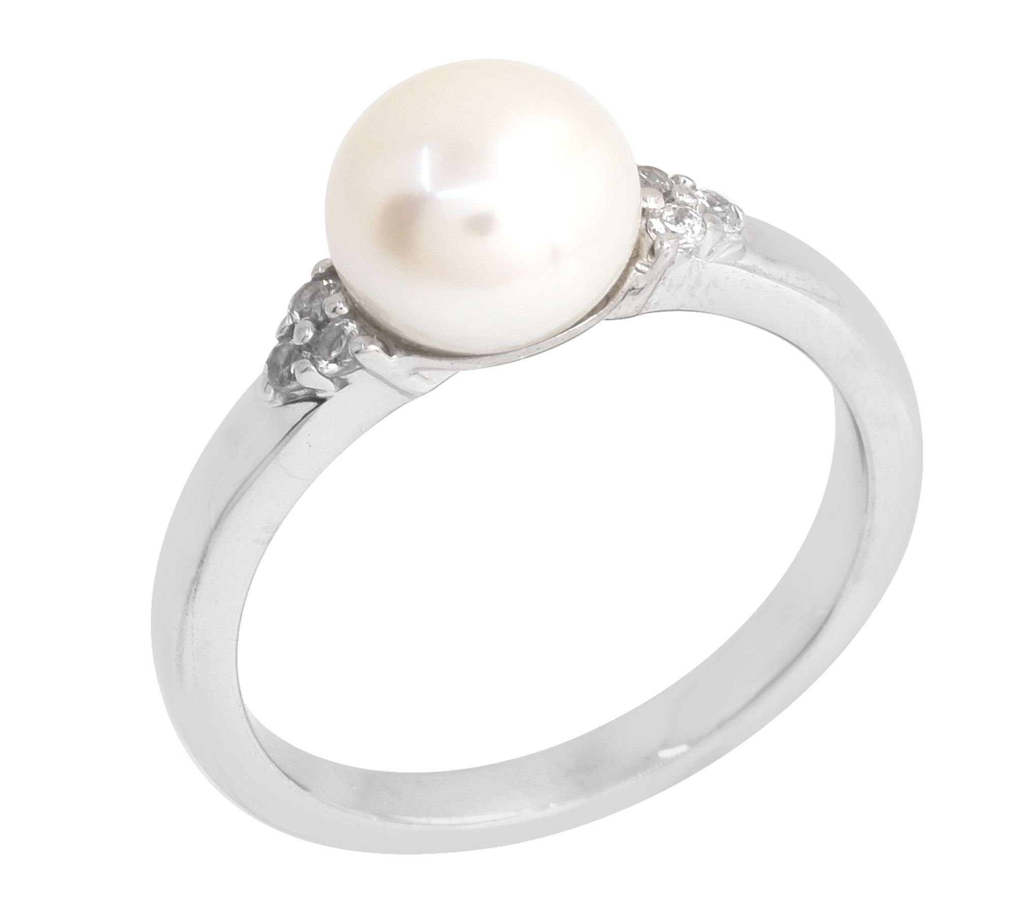 Timeless, simple, and elegant, this sterling silver ring features a shimmering cultured freshwater pearl, accented with sparkling white zircon. From Affinity® Gems.